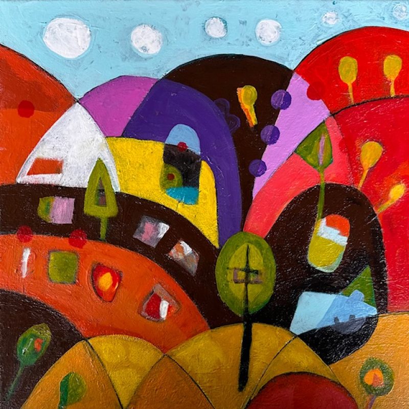 Sides of the painting are painted in the same color to match the artwork. I used a palette knife to complete this painting.