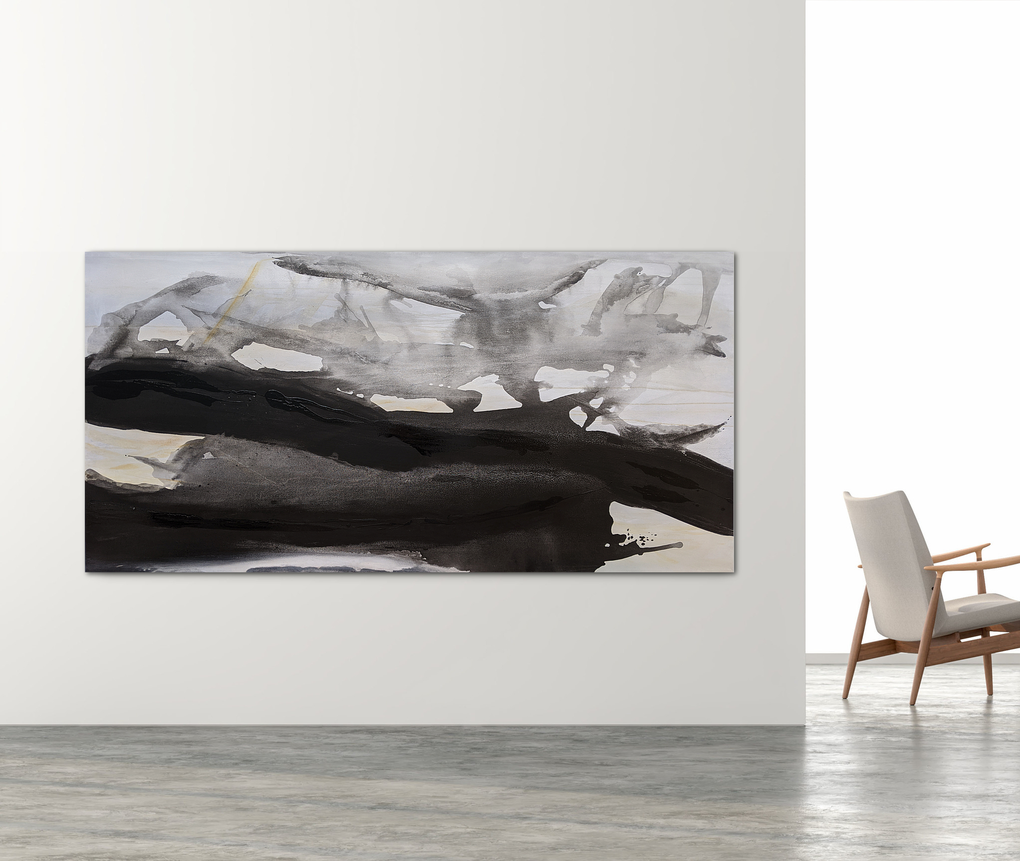 Water No 15 by Emilie Heurtevent is a combination of multiple layers and fine brush strokes made with acrylic paint. It will fit into most interiors and blends in well with most colour schemes. A great solution to a large size wall.