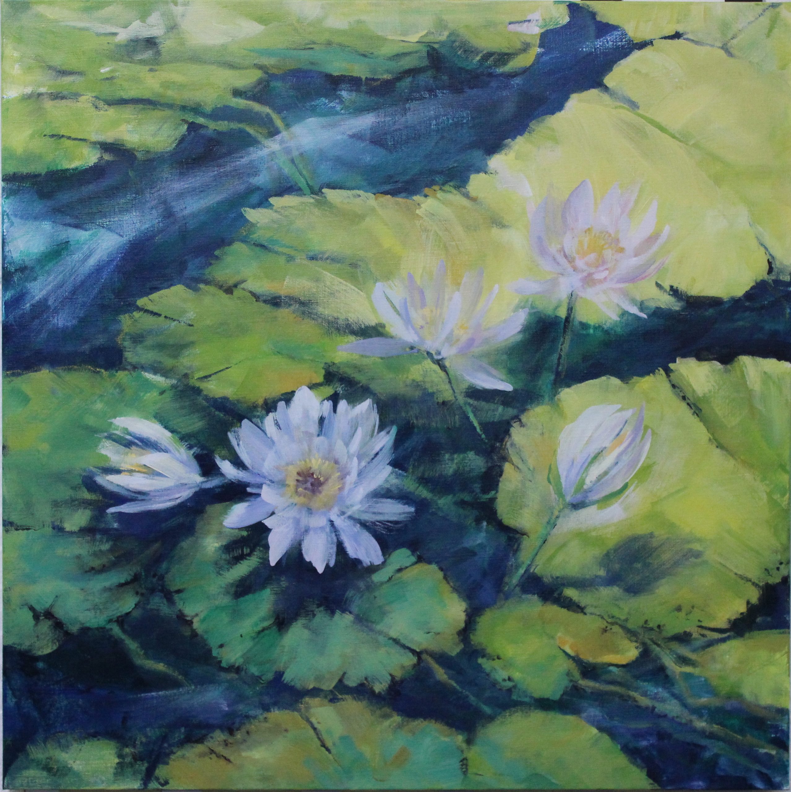 Water lilies One Pale Pink Blossom by Debbie Parker