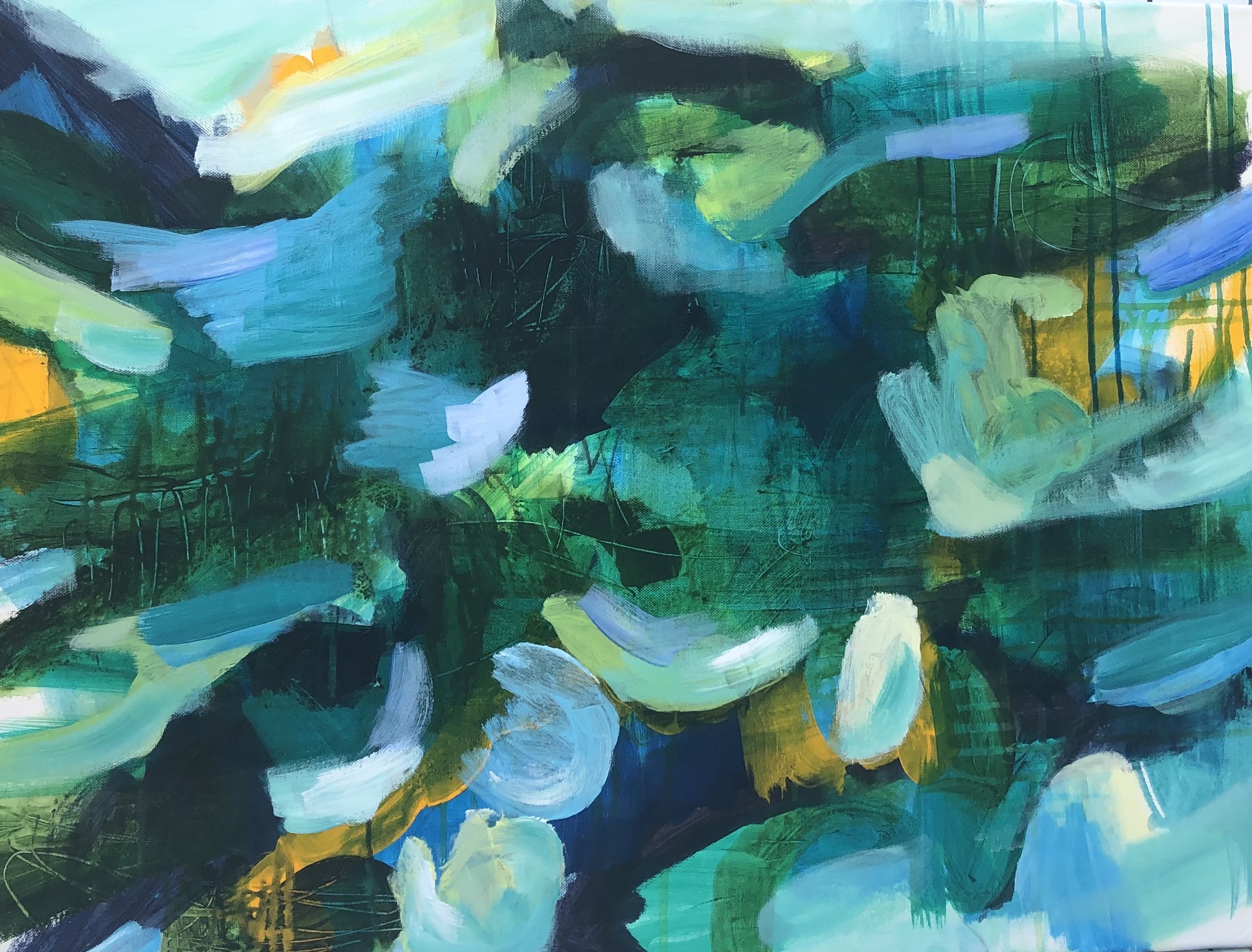 Waterside by Carmel Reilly – Original acrylic abstract painting inspired by walking along the ocean’s edge. Signed Certificate of Authentication.