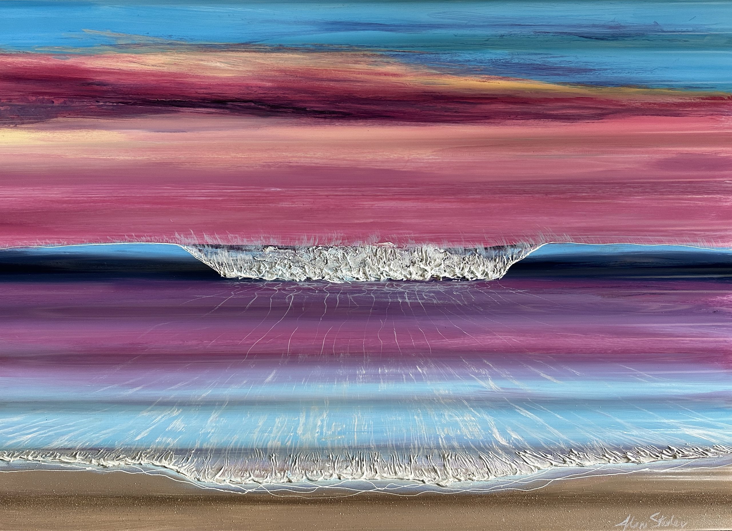 Waves stacked to the horizon by Adam Stanley – in this painting I have created a 3D depth in the waves by painting on corrugated polycarbonate.