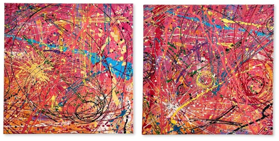 We A Pair by Dessie O’Gorman – a pair of original abstract paintings. Gloss finish. Each painting is 50.5m x 50.5cm.