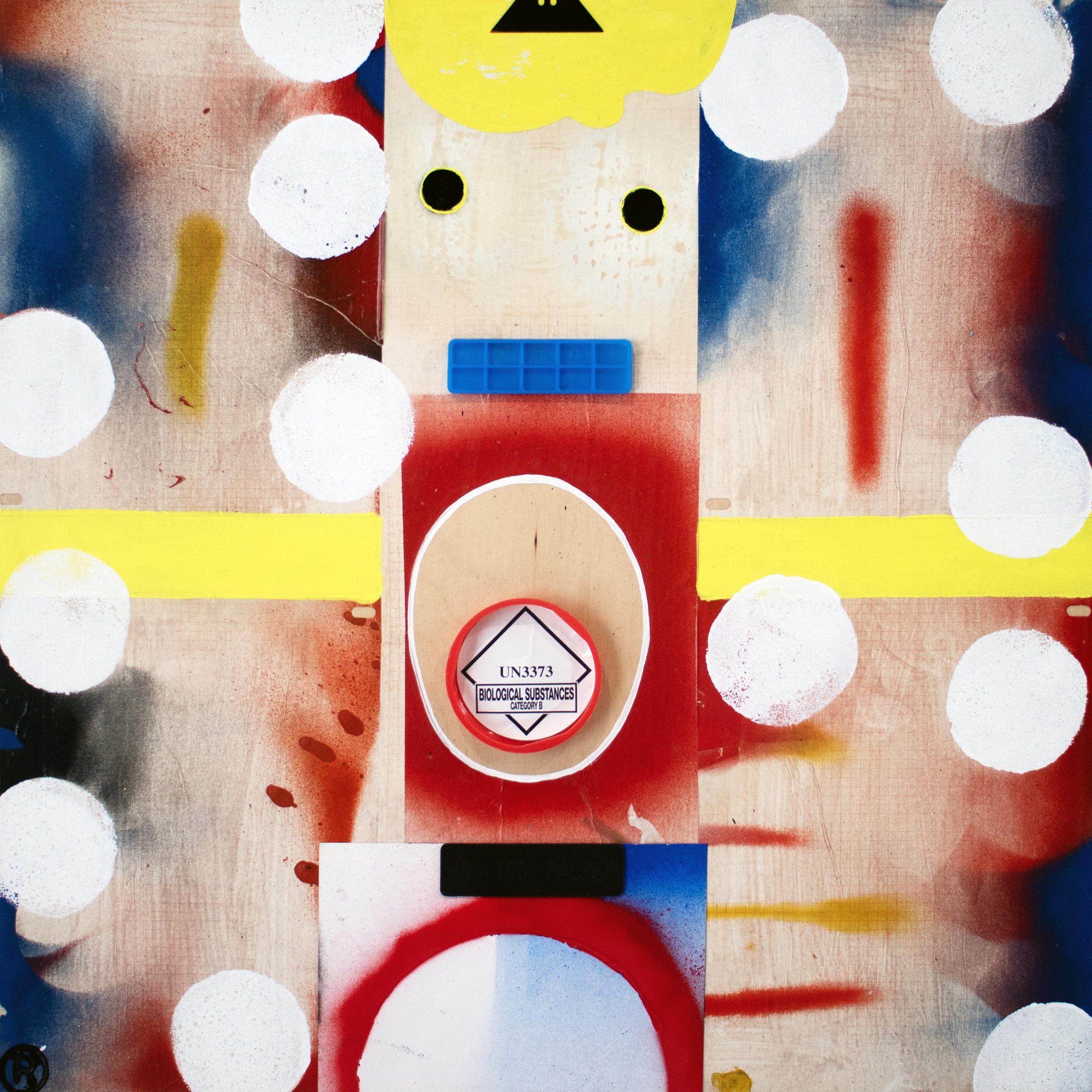 Acrylic, spray enamel, blade, and collage on birch board, 2017 – 2025.