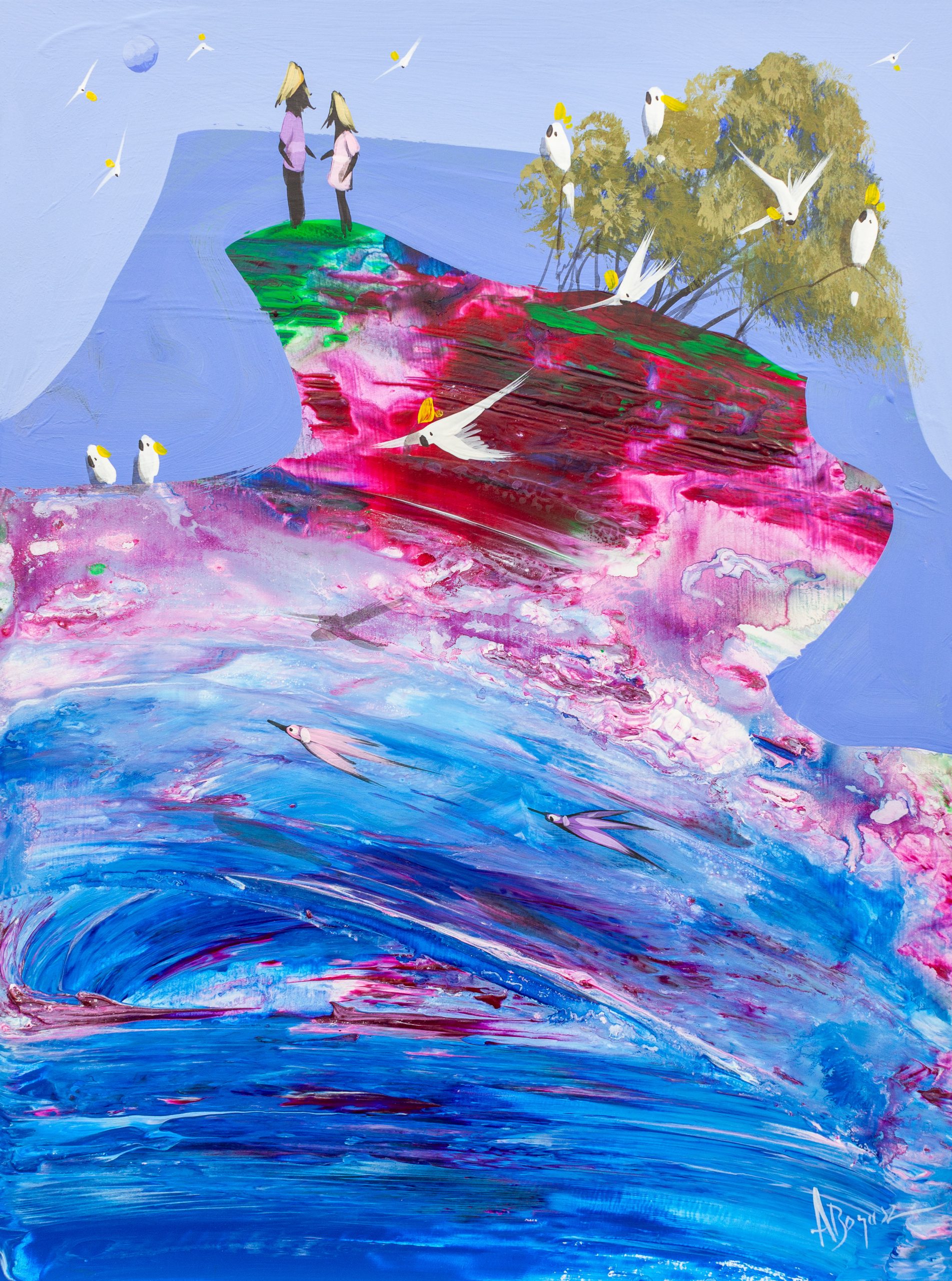 My paintings draw inspiration from a broad range of sources. I’m interested in the mystery of our existence, my family, which includes two children, and the stories that life inevitably throws our way.Â