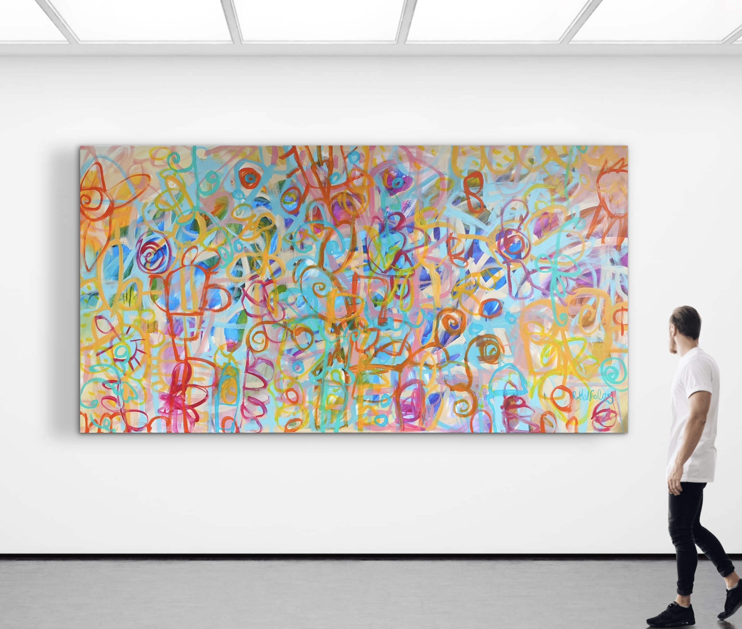I try to give an accurate example of the size of the work insitu but these are examples only and do not replicate your own space so PLEASE make sure to measure your space for the size of the work !!!!! this is especially essential with large pieces like this one as they are very expensive to send even in a roll – please don’t guess.