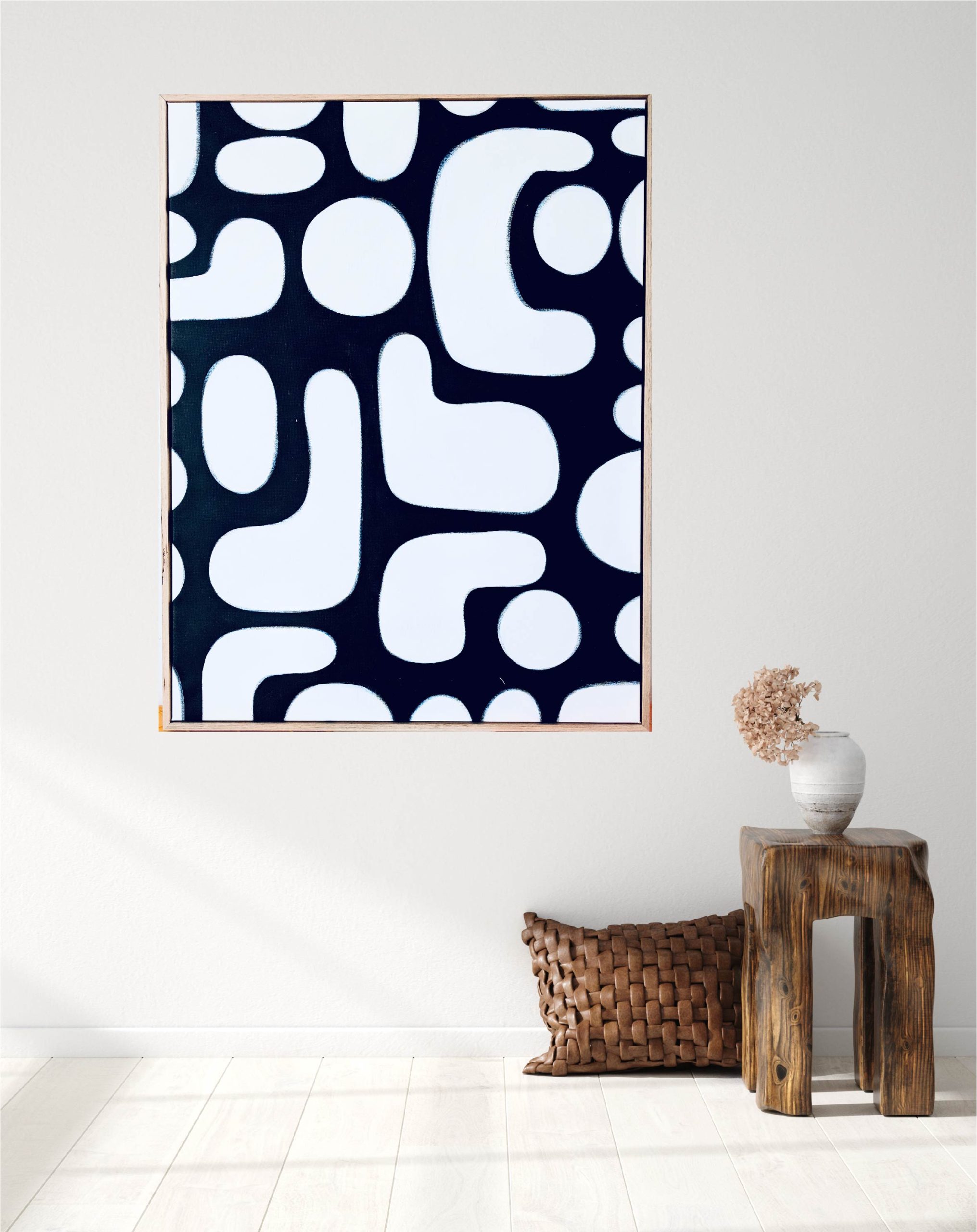 Black Acrylic Paint on a white background professionally framed in a raw Tasmanian Oak floating frame.