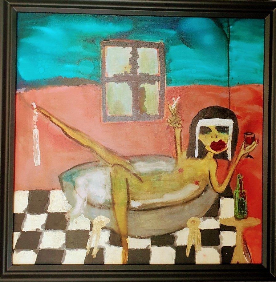 This painting was inspired by a favourite sketch from Kenny Everett Video Show which had 2 nuns in a bath with a soap on a rope
