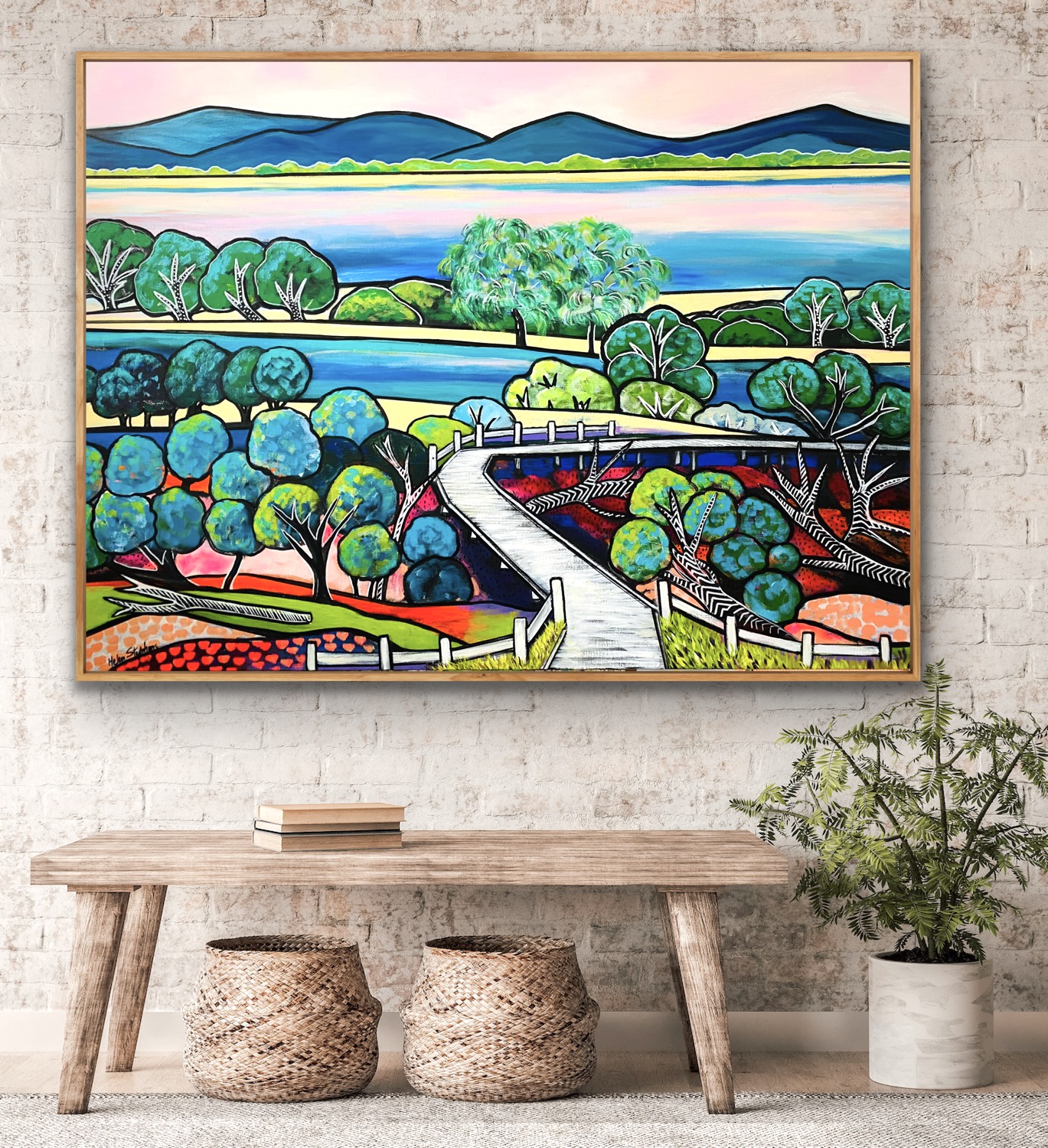 Reimagined with heightened colours, this impressionistic interpretation of the real, would make a beautiful difference to a living room or large wall at home.