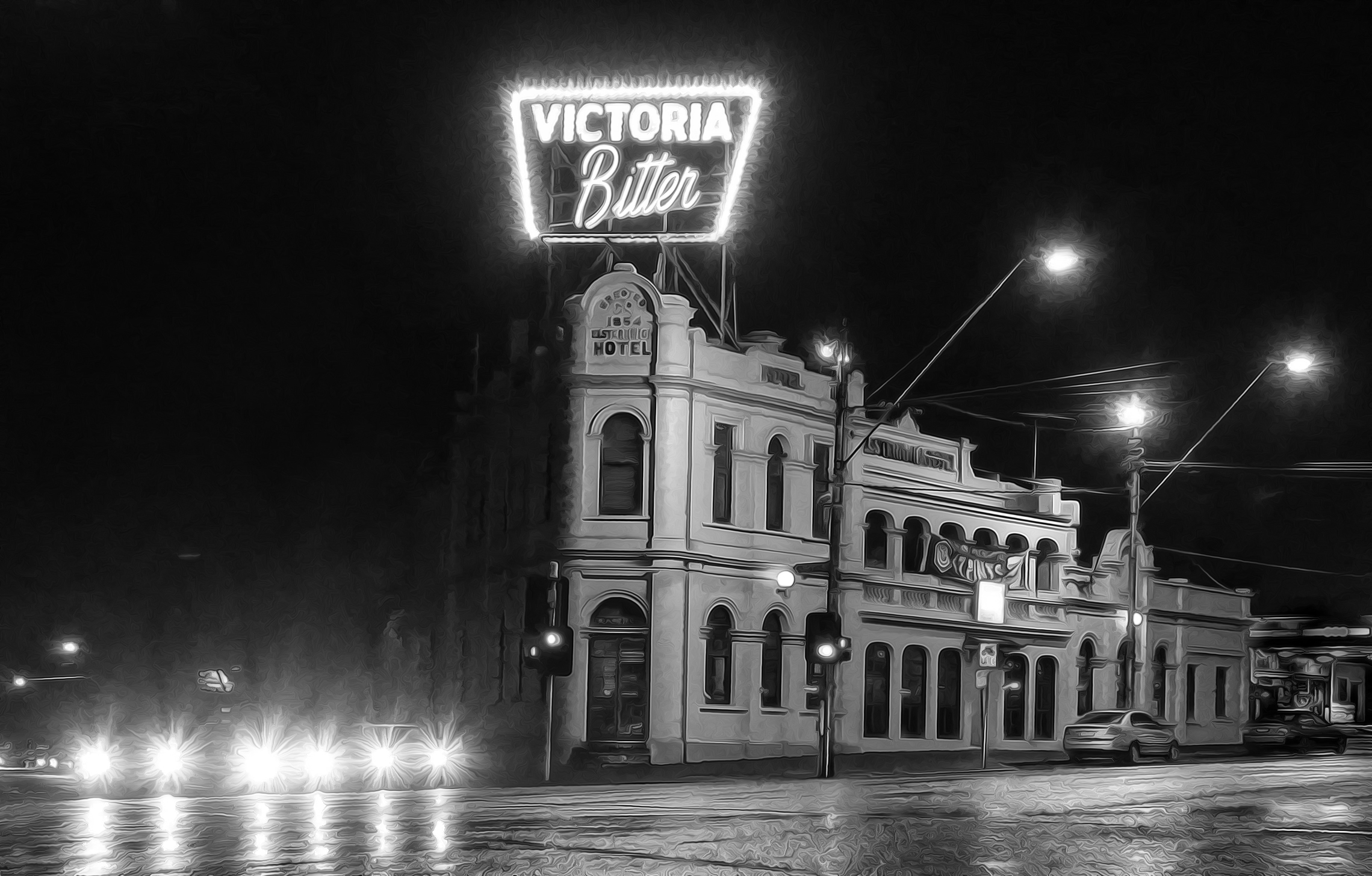 Moonlight over Melbourne Black and White