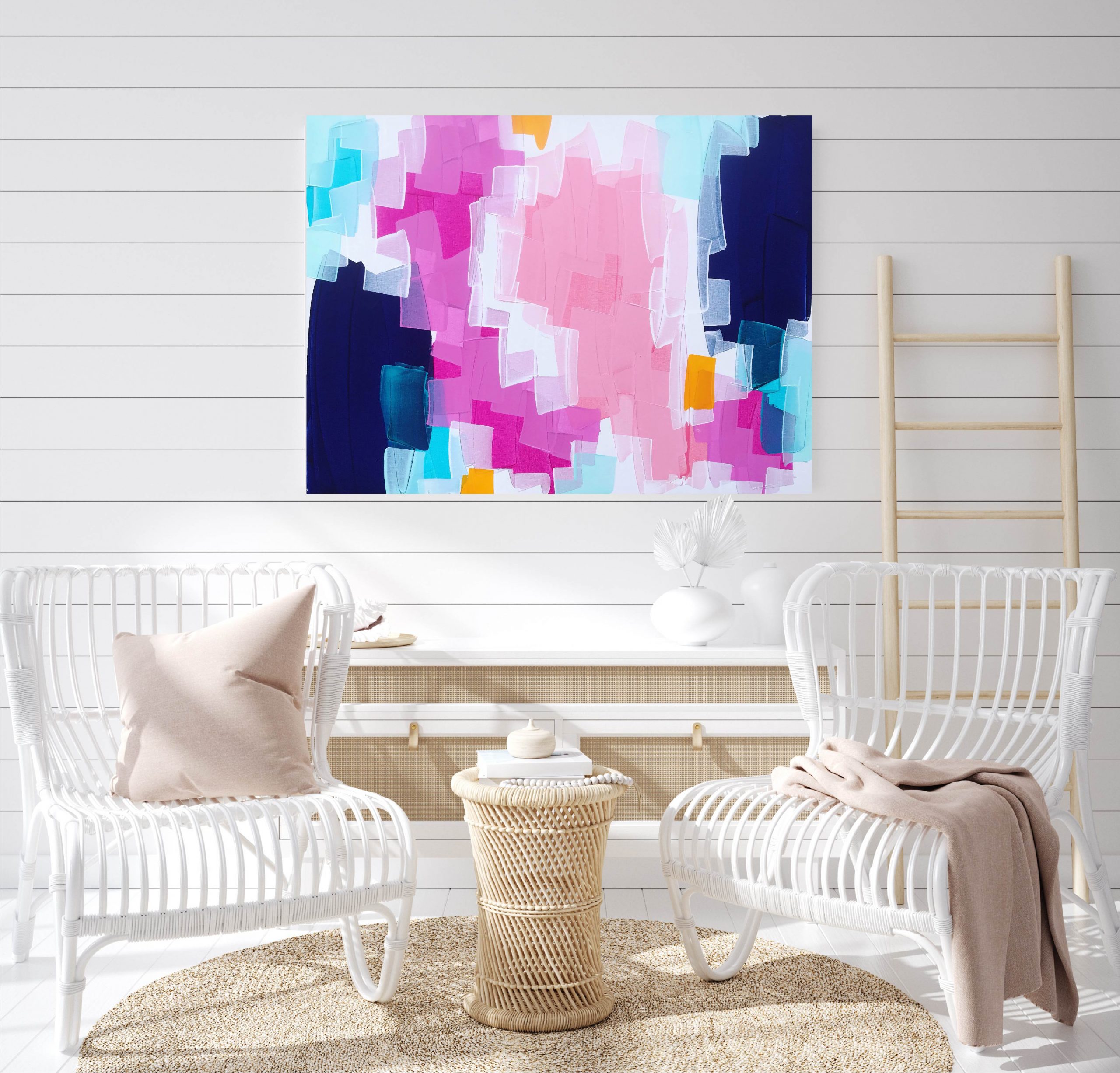 Original abstract acrylic artwork. Artwork sides are painted white and it comes with a wire across the back, ready to hang on the wall.