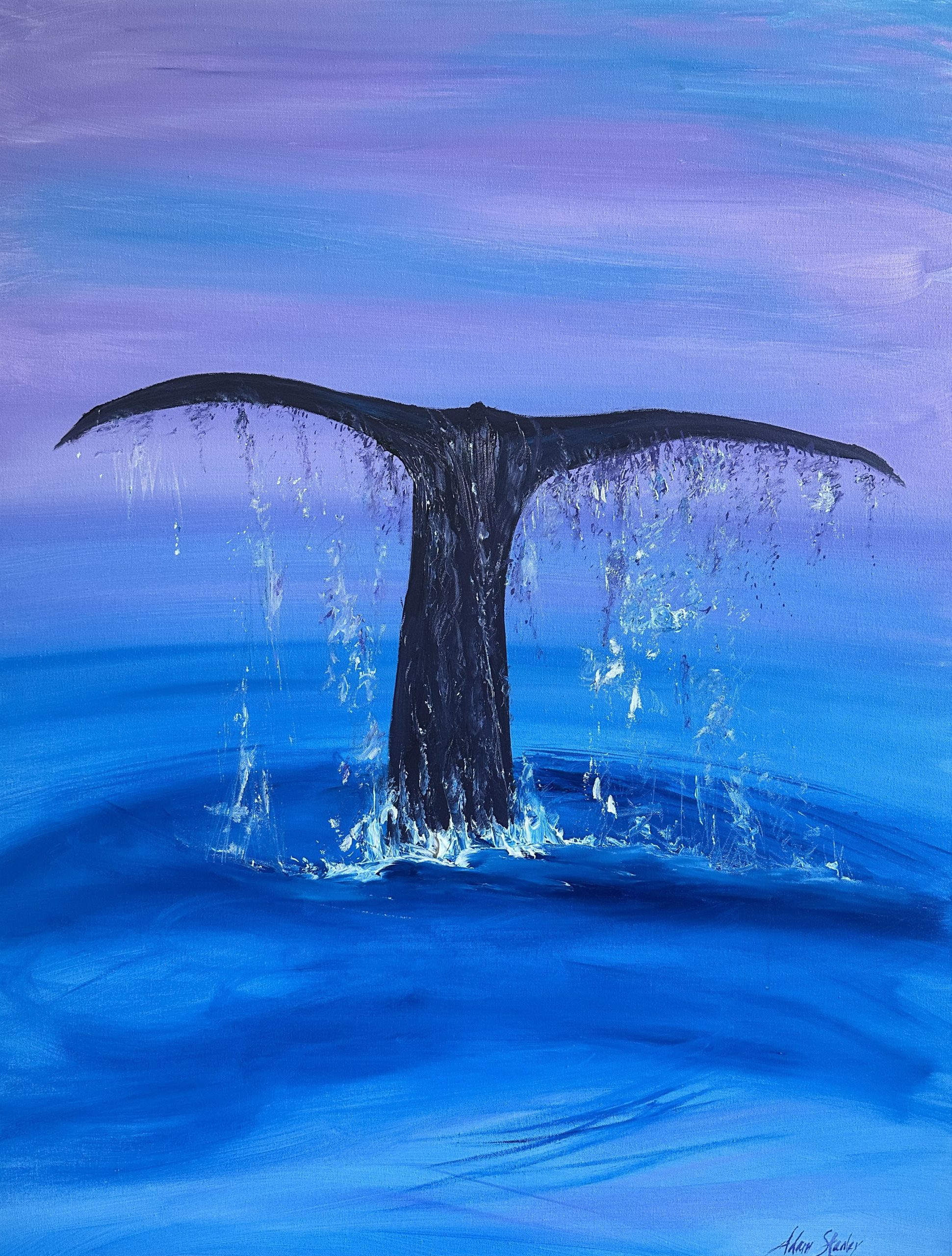Whale tail splash by Adam Stanley – there is nothing more special than seeing a whale tail splash. I used acrylic with texture to create this effect.