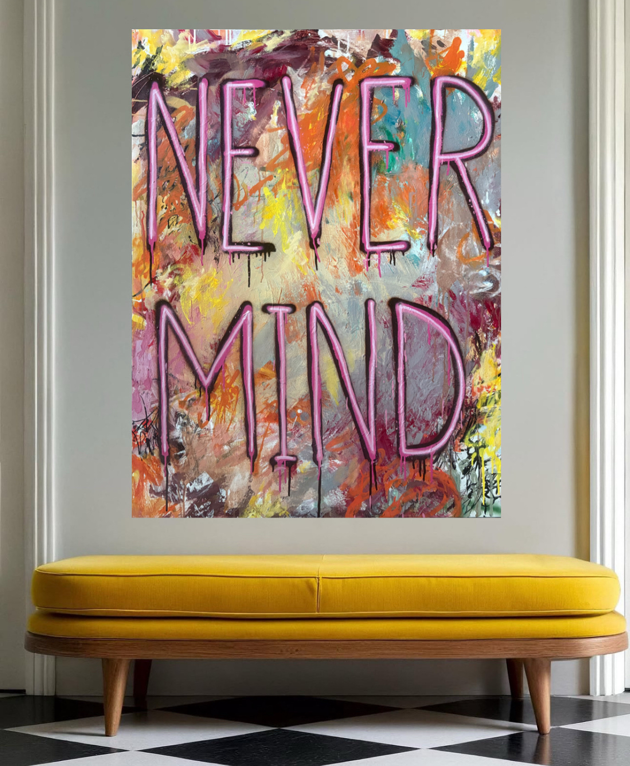 The work is an abstract statement piece and will give maximum impact to any room. My paintings are directly influenced by graffiti in city laneways, vintage billboards and other weathered surfaces & is also inspired by my love of gestural abstraction.