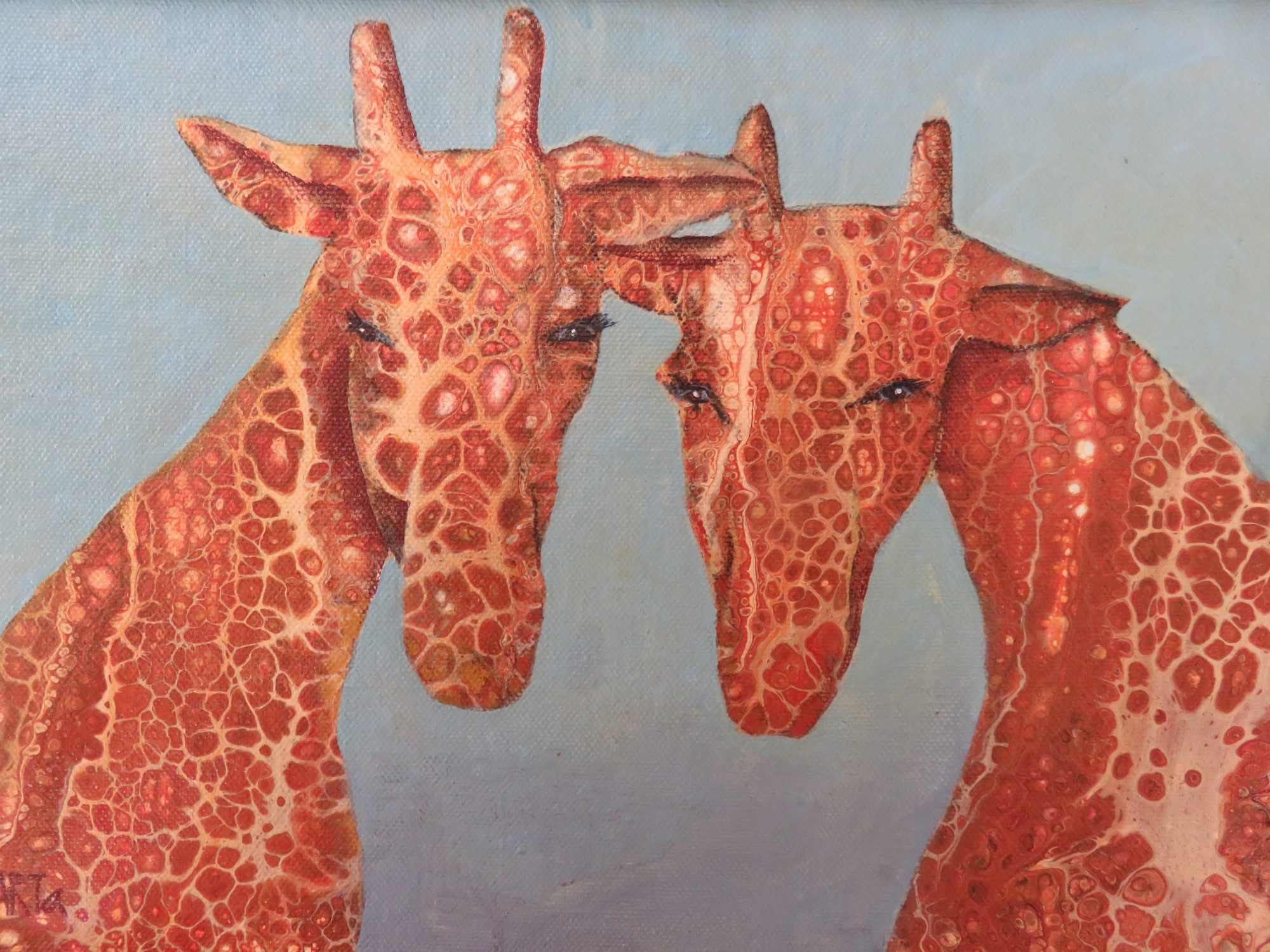 These two Giraffes were inspired by an acrylic swipe that just happened to show a astonishing pattern reminding me of Giraffes. The challenge was how to create these two lovely creatures