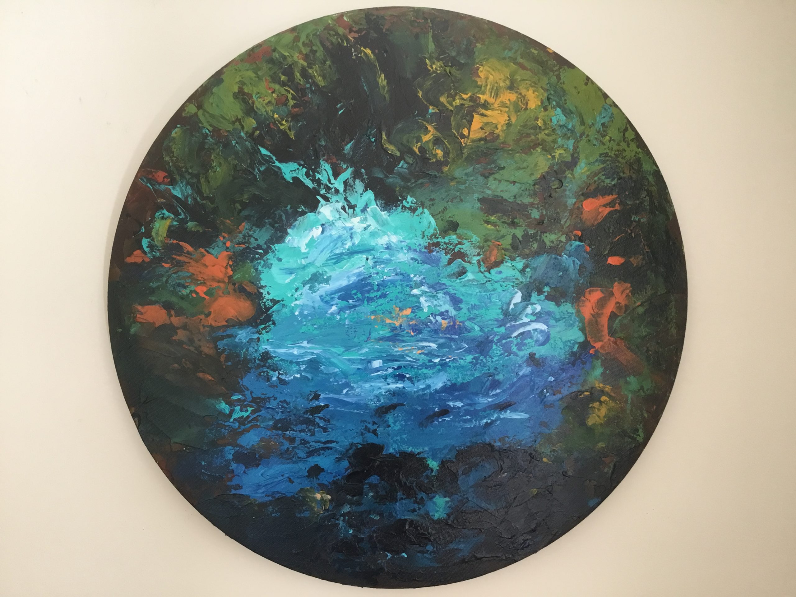 Wheel of Fortune by Valerie Eugarde :- This is a purely intuitive painting using palette knife and brush, it is based on nature and dreams of good things to come, fortune favours the bold so it is made  with bold and energetic strokes and will give energy to any home or office. Original one off.