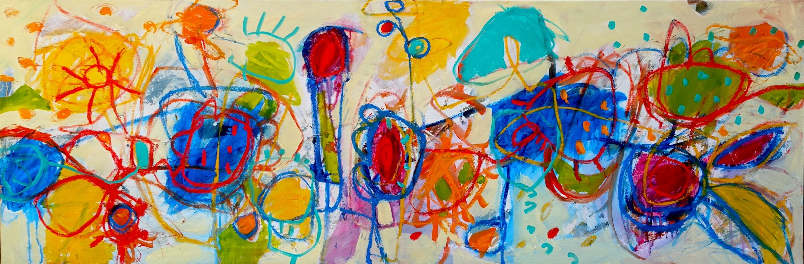 This works is oil and acrylic on 51 X 153cm on Fine Belgian Linen, signed on the front and sent with an artist CV and certificate of authenticity.