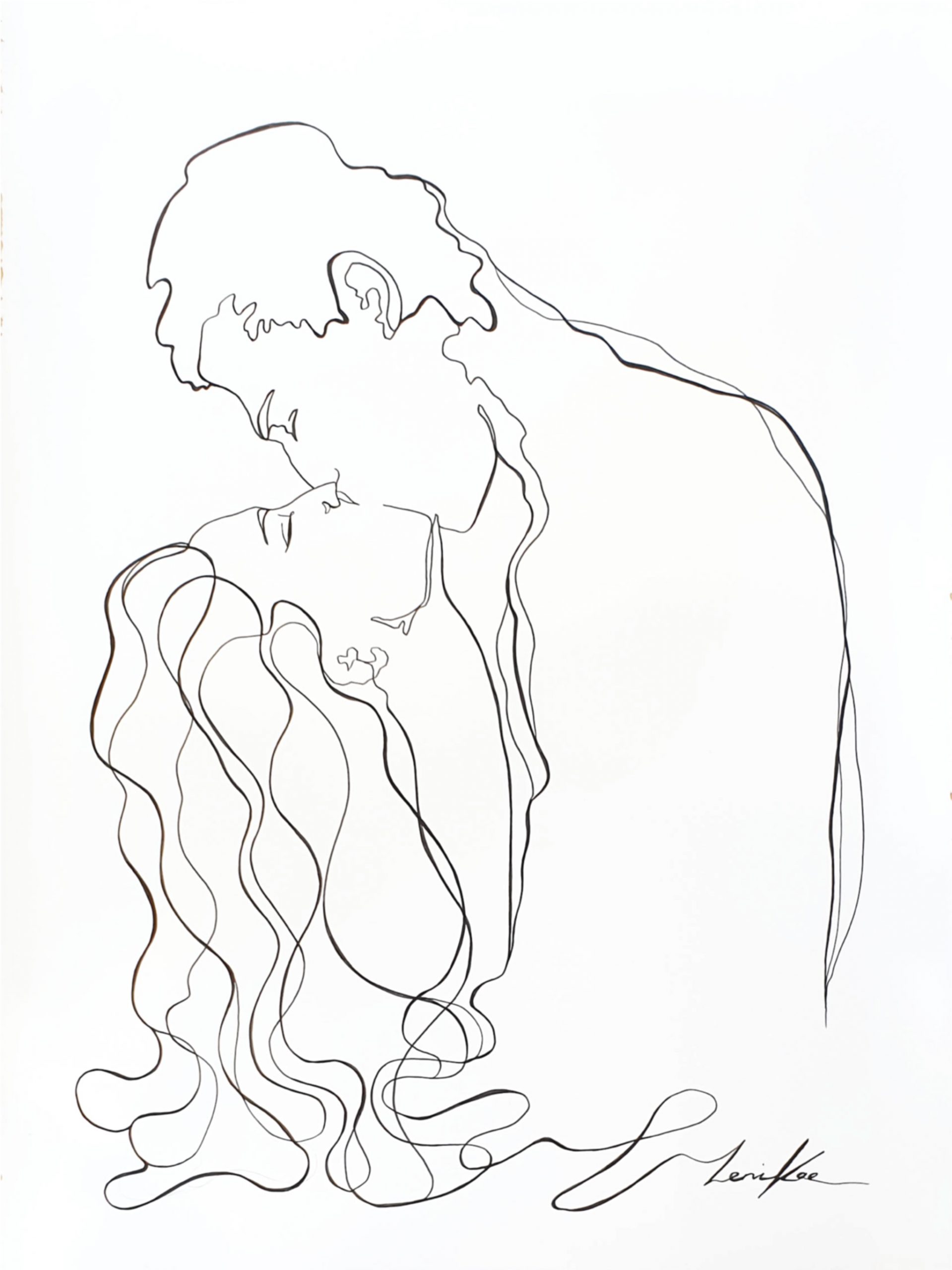 When We Kiss by Leni Kae – A romantic 56x76cm line art drawing by Sydney artist Leni Kae, of two lovers kissing. From the series “Lines”, the artist uses the line work to explore an appreciation of life’s simple moments of joy, and love.