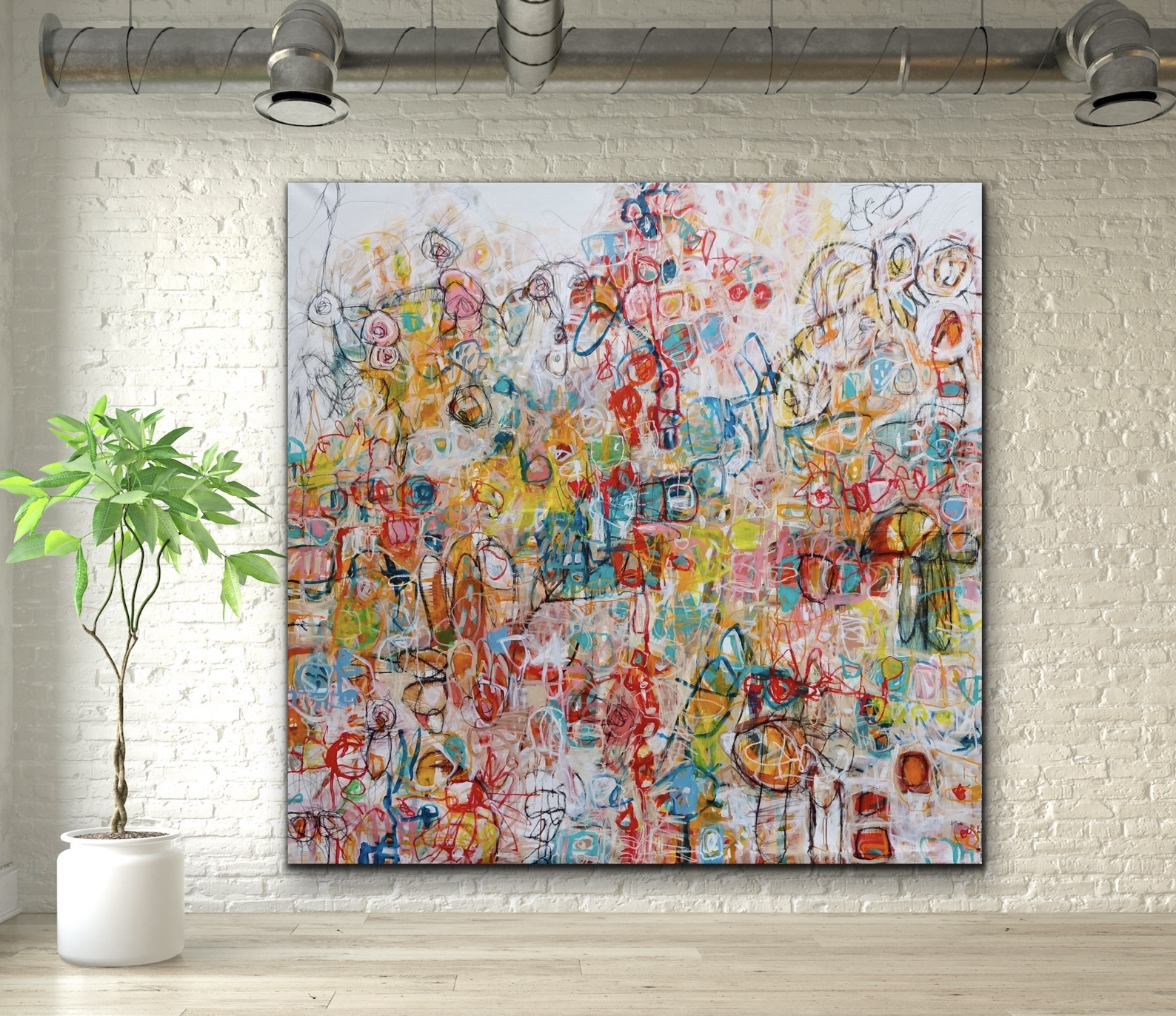This work is on 200X200cm on Fine Belgian Linen, signed on the front and sent with an artist cv and certificate of authenticity.