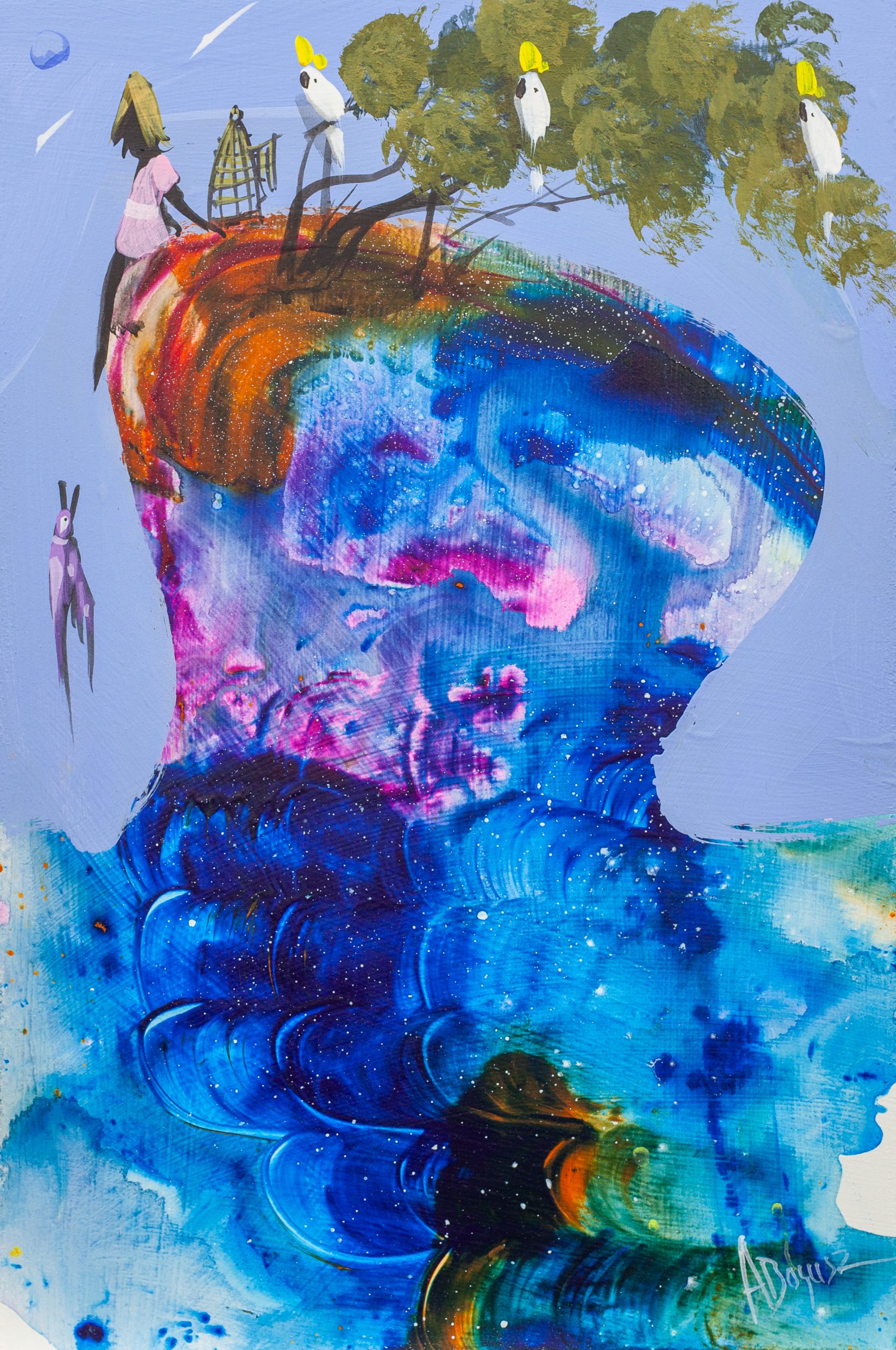 My paintings draw inspiration from a broad range of sources. I’m interested in the mystery of our existence, my family, which includes two children, and the stories that life inevitably throws our way.Â