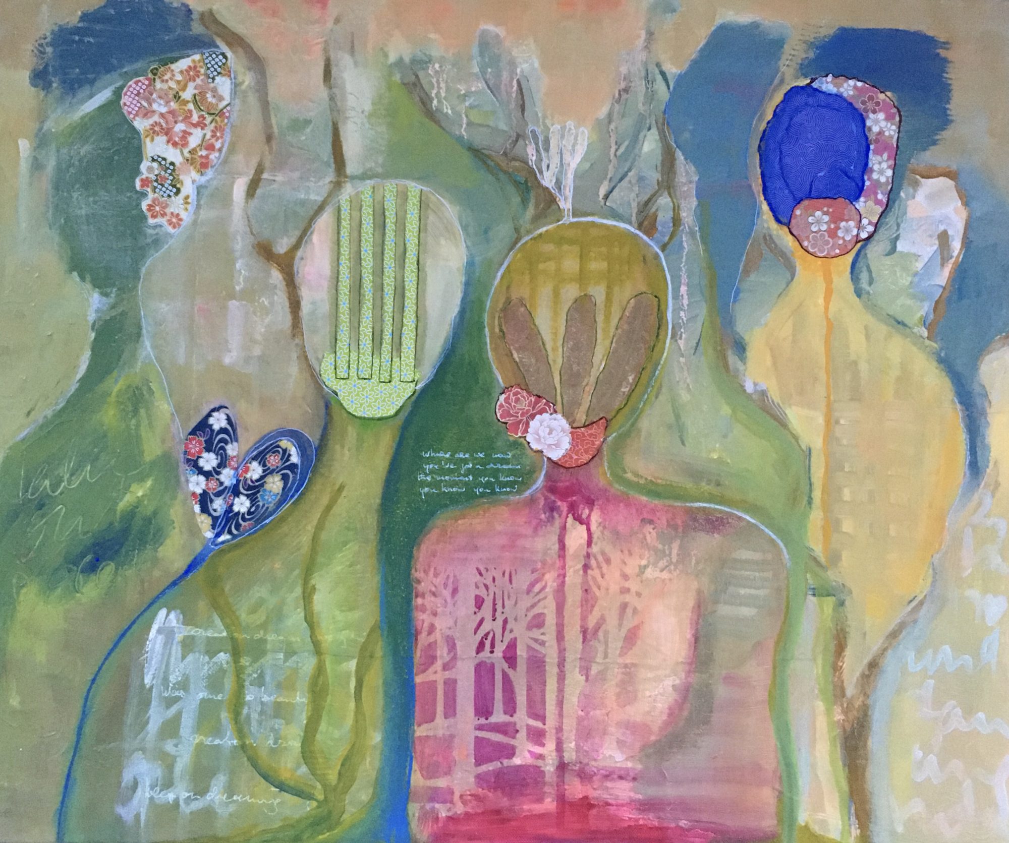 Where are we now, the moment you know you know – Mixed Media and collage on canvas by Marijke Lambregtse, stretched and ready to hang.