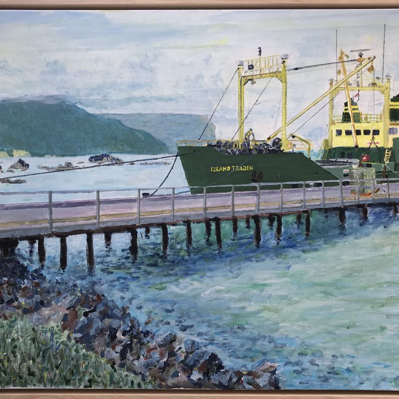 Acrylic on stretched canvas and encased in a white timber floating frame.