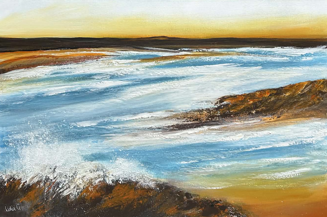 – This painting is on stretched artist quality canvas encased in a white timber floating frame.