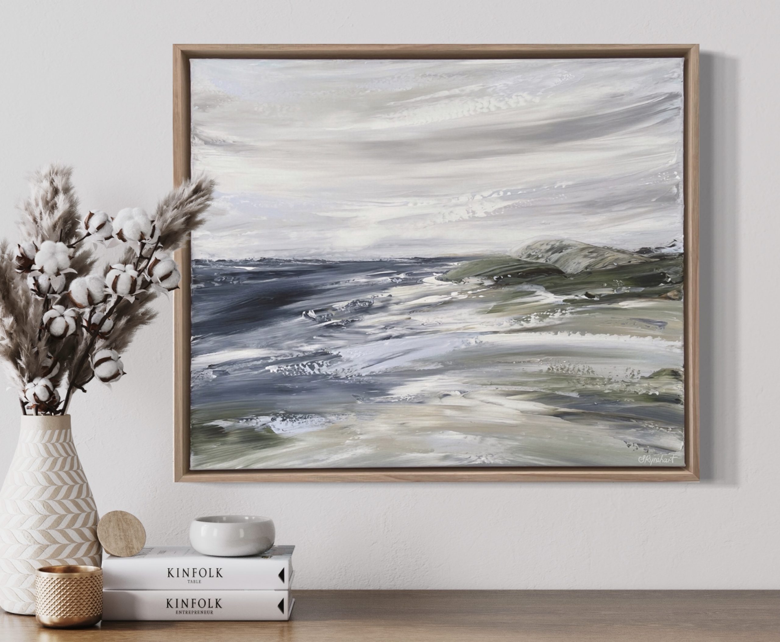 This emotive seascape embodies the beautiful South Coast of NSW that is my second home. Created with palette knives on 500gsm Belgian Linen, framed in solid Tas Oak, this is satin varnished and comes with a COA.