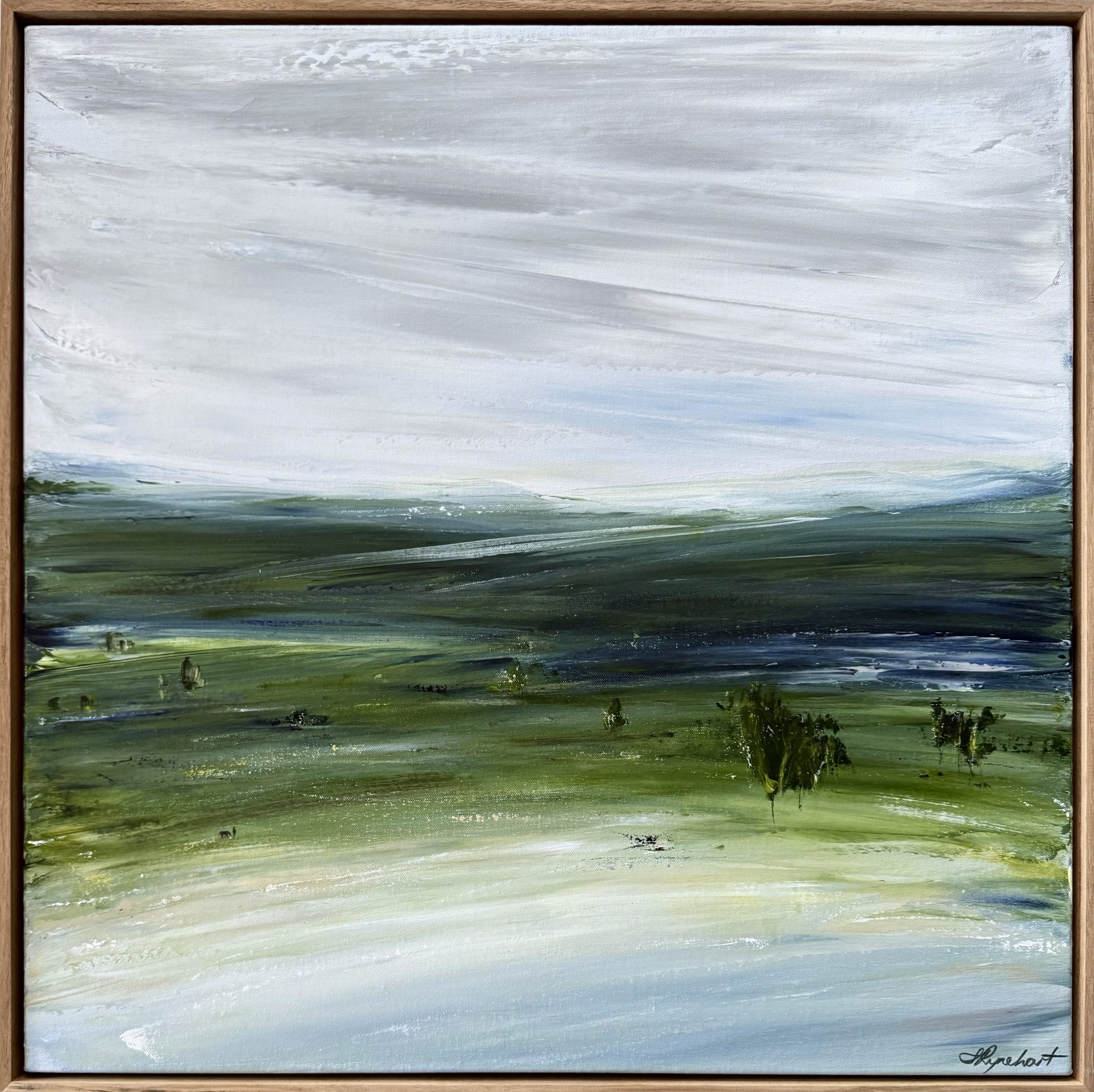 This emotive coastal landscape with it’s moody sky over distant ranges, quiet valleys with water ways, dappled trees, and scattered horses grazing contentedly, evokes solitude, acceptance, and healing for me. I hope it does you too.
