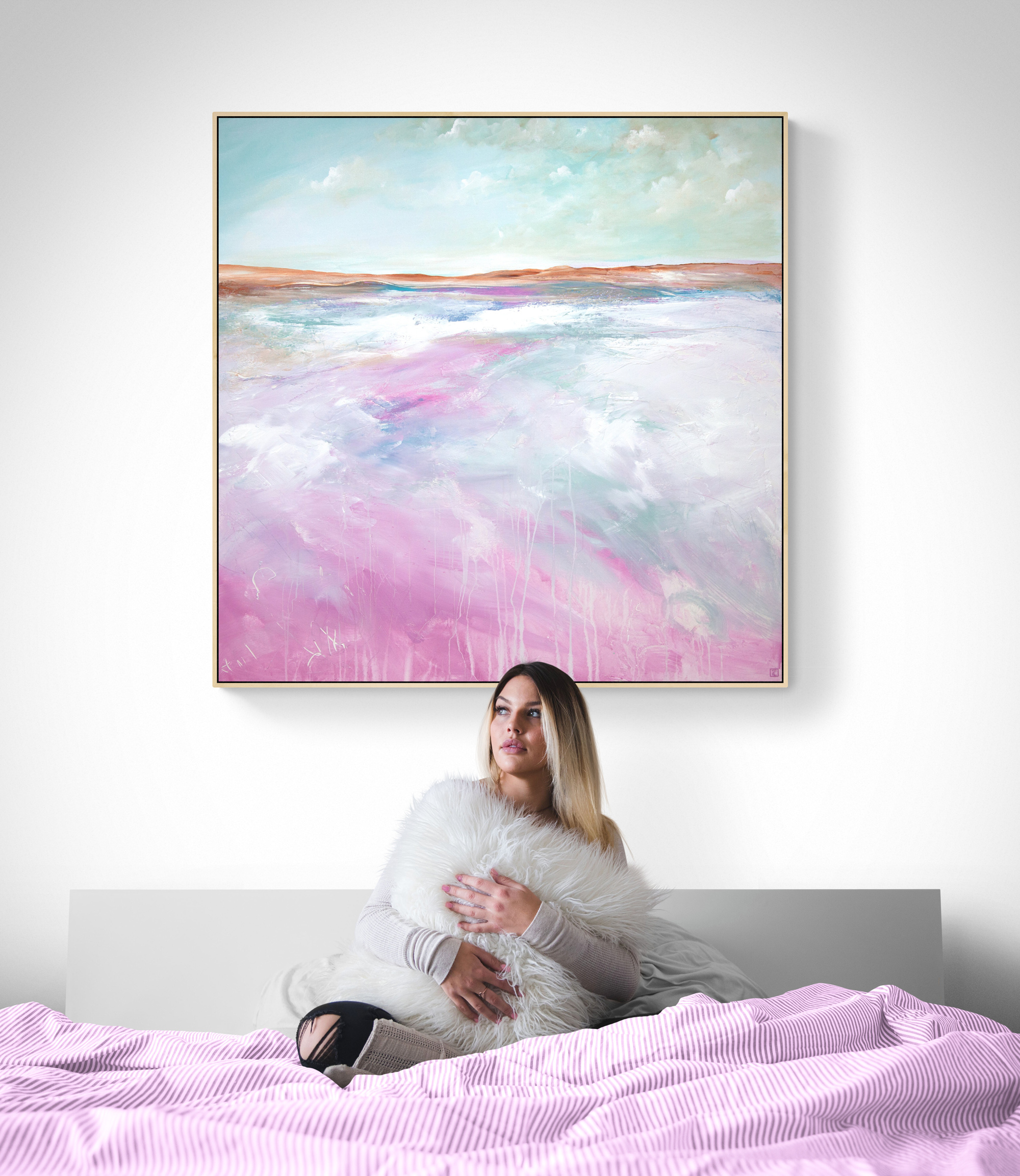 Where My Heart Floats by Tania Chanter is inspired by the beautiful Australian landscape and the changes of light and mood throughout the day. Tania’s hope is that this painting brings a sense of calm to the room where it lives, and that is makes the people who enter the room feel as though a part of nature is right there with them.