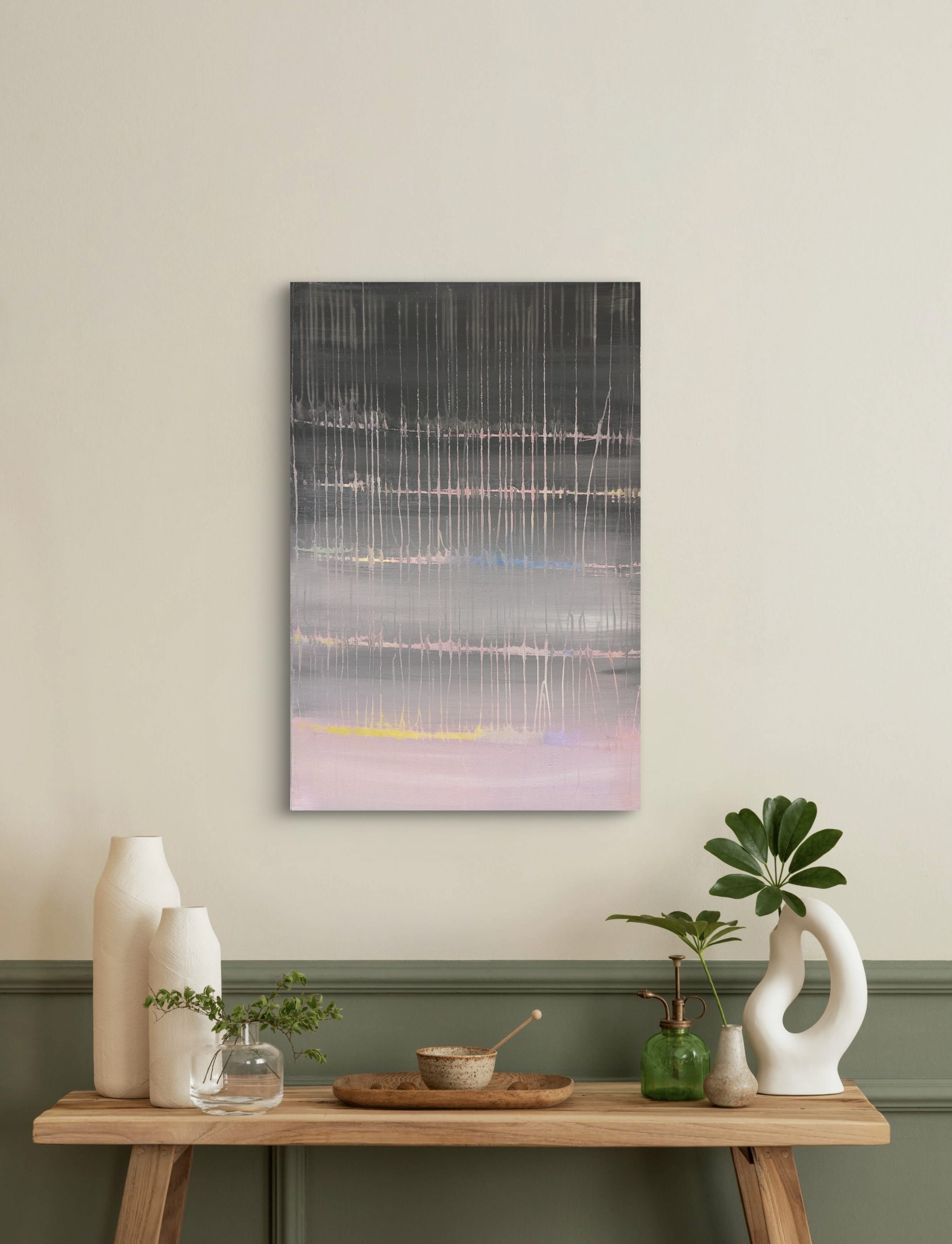 This painting is a part of my ‘Shbori’ collection. A beautiful abstract in pastel shades, dusty pink and warm gray.