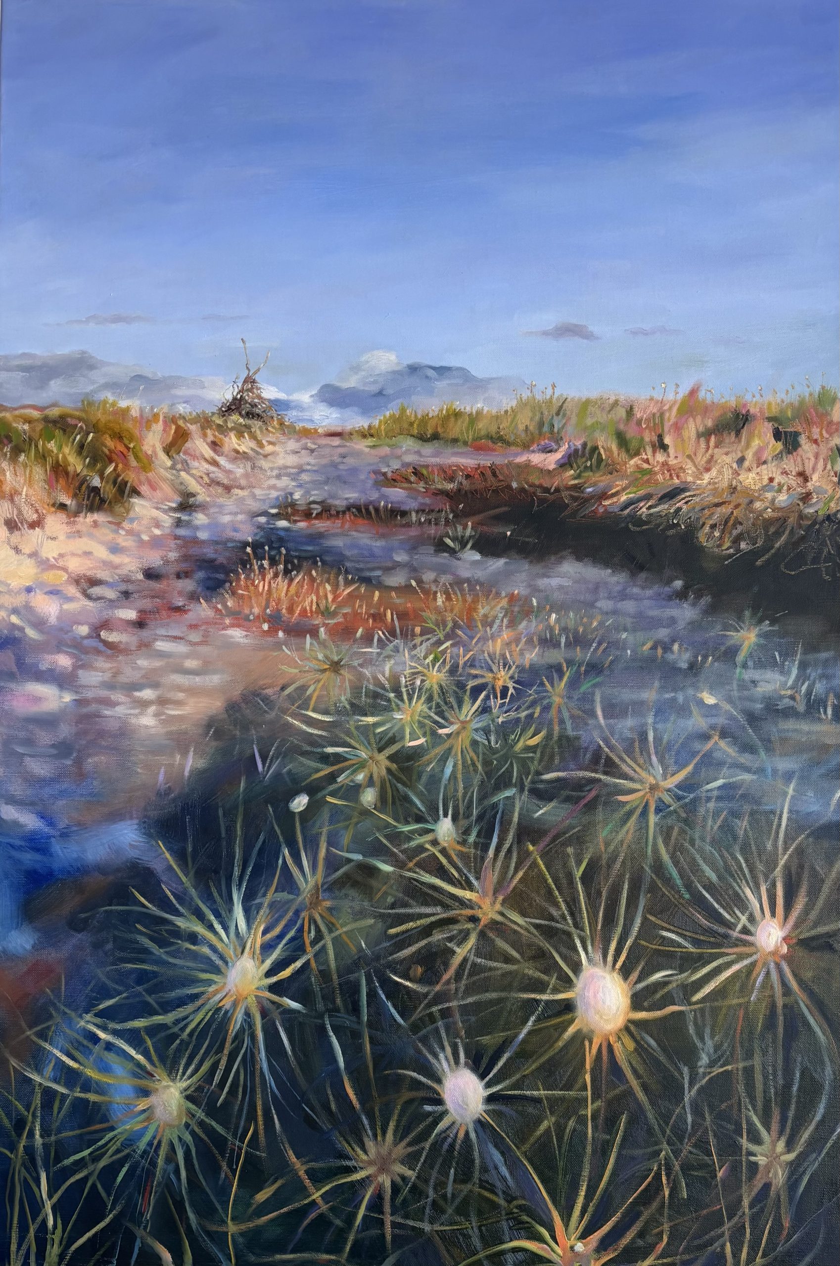 ‘Where wandering paths meet’ is an original artwork painted in oils on linen and professionally framed in oak by Jackie Moss