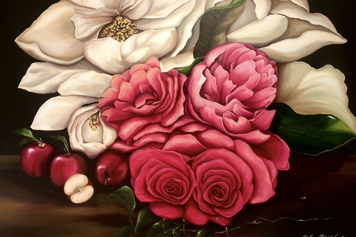 While You Were Sleeping  by Anita McDaid Siedlecki – This beautiful original painting was a finalist in The Doyles Art Awards in 2024. Anita’s Stunning florals encapsulate the beauty and purity in each piece. Anita likes to create to move her viewers and expresses herself with strong brush strokes, bold impressions and vibrant colours. Inspired by nature and flora Anita brings to life each painting.  Commissions are welcome. Painted by Anita McDaid Siedlecki and comes with a certificate of authenticity.