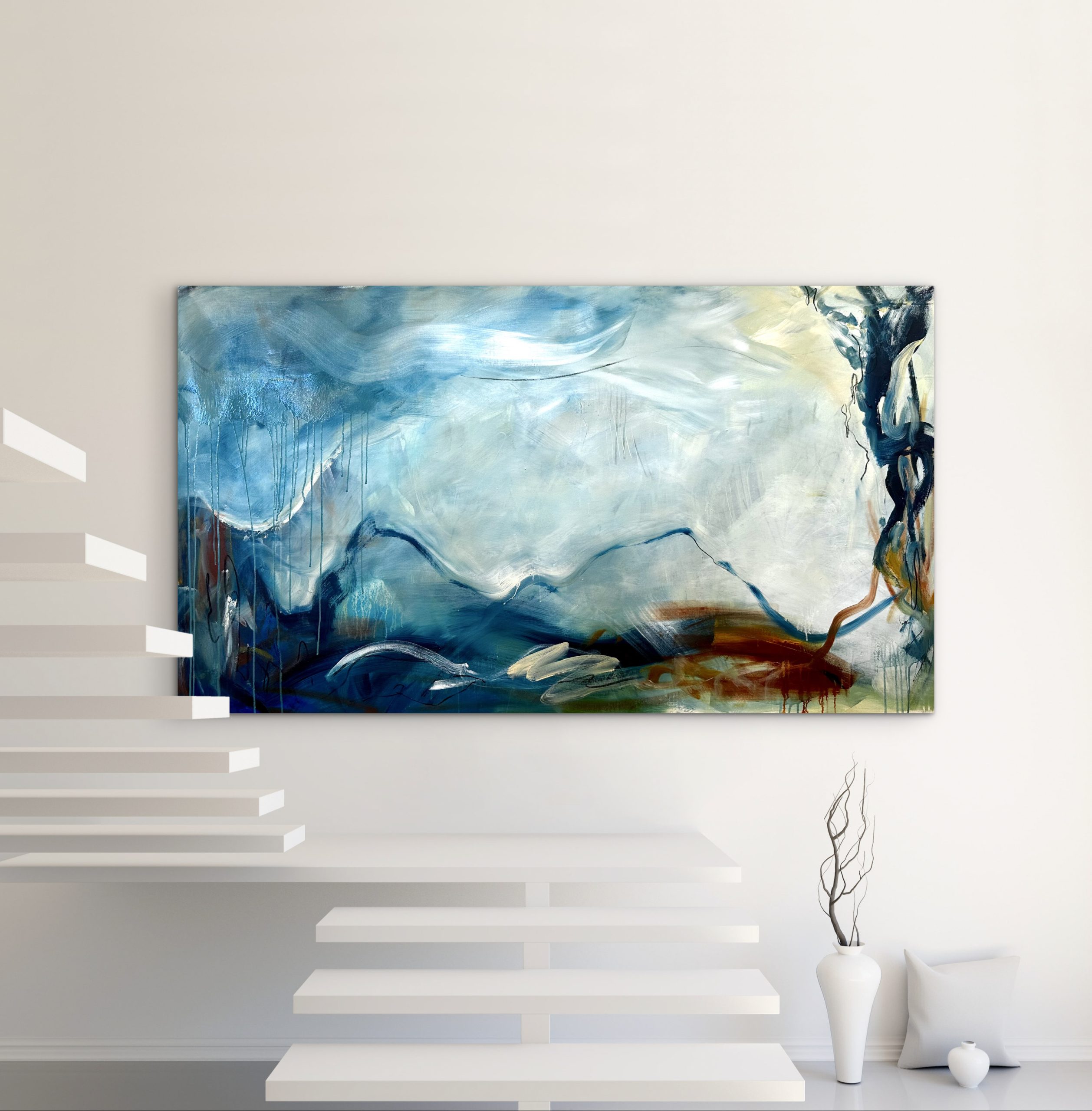 This artwork has broad luscious strokes in shades of blue, navy and brown.