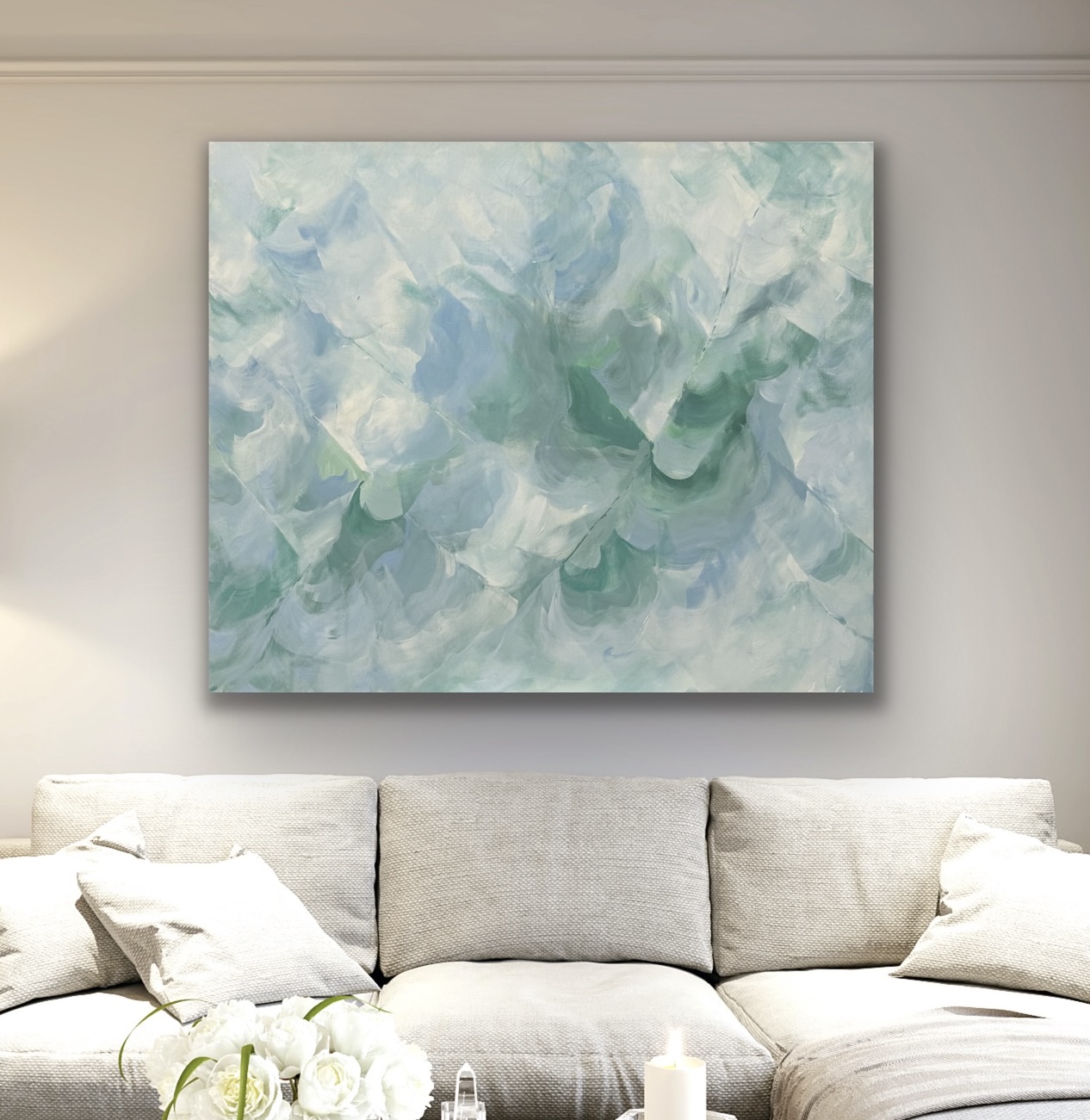 A captivating artwork that transports us into a world of serenity and relaxation. Where soft blue and green hues blend together to create ethereal patterns.
