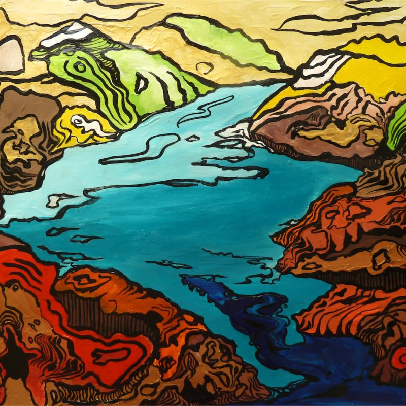 Visually, Whispers from the Blue Dot brings harmony—whites, blues and browns in the nebula offer calm while vibrant bursts spark curiosity and conversation. Layers of charcoal, inks, spray paint, modelling paste, acrylics, and rich oils create a textured surface full of depth and complexity. The edges are painted on quality gallery wrapped canvas, the surface varnished, and it is ready to hang.