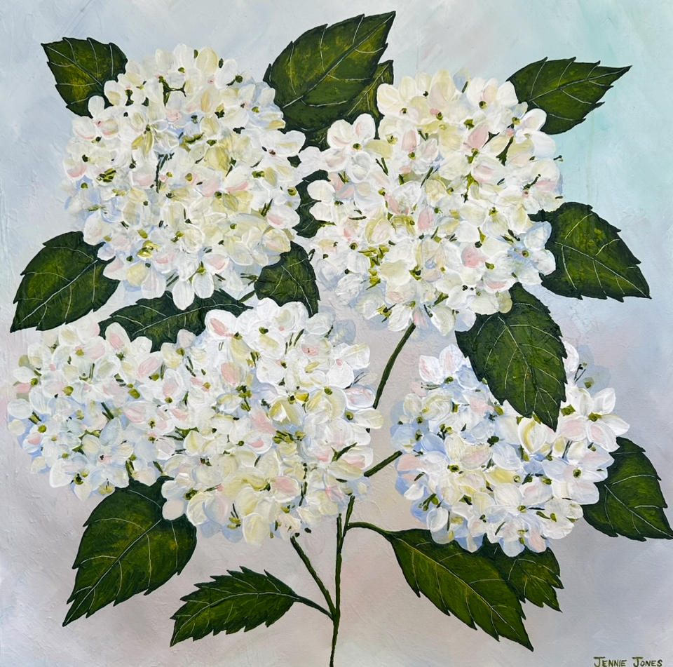 White Hydrangeas by Jennie Jones