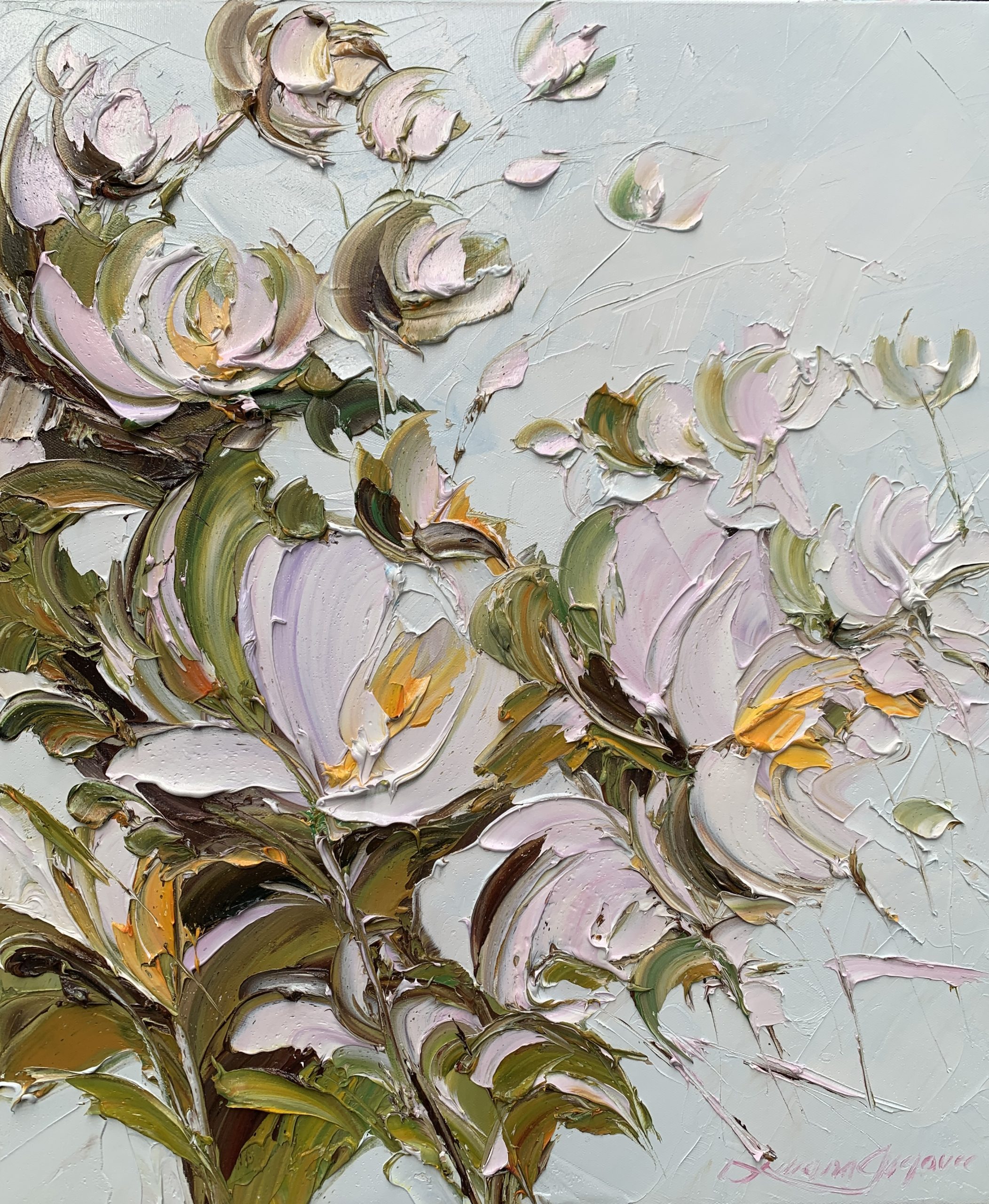 White magnolia No 19Â by Liliana Gigovic – Oil on canvas, stretched and ready to hang.