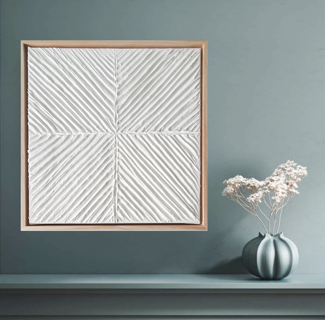 This artwork has been created by layering a mixture of modeling paste and putty on an canvas.