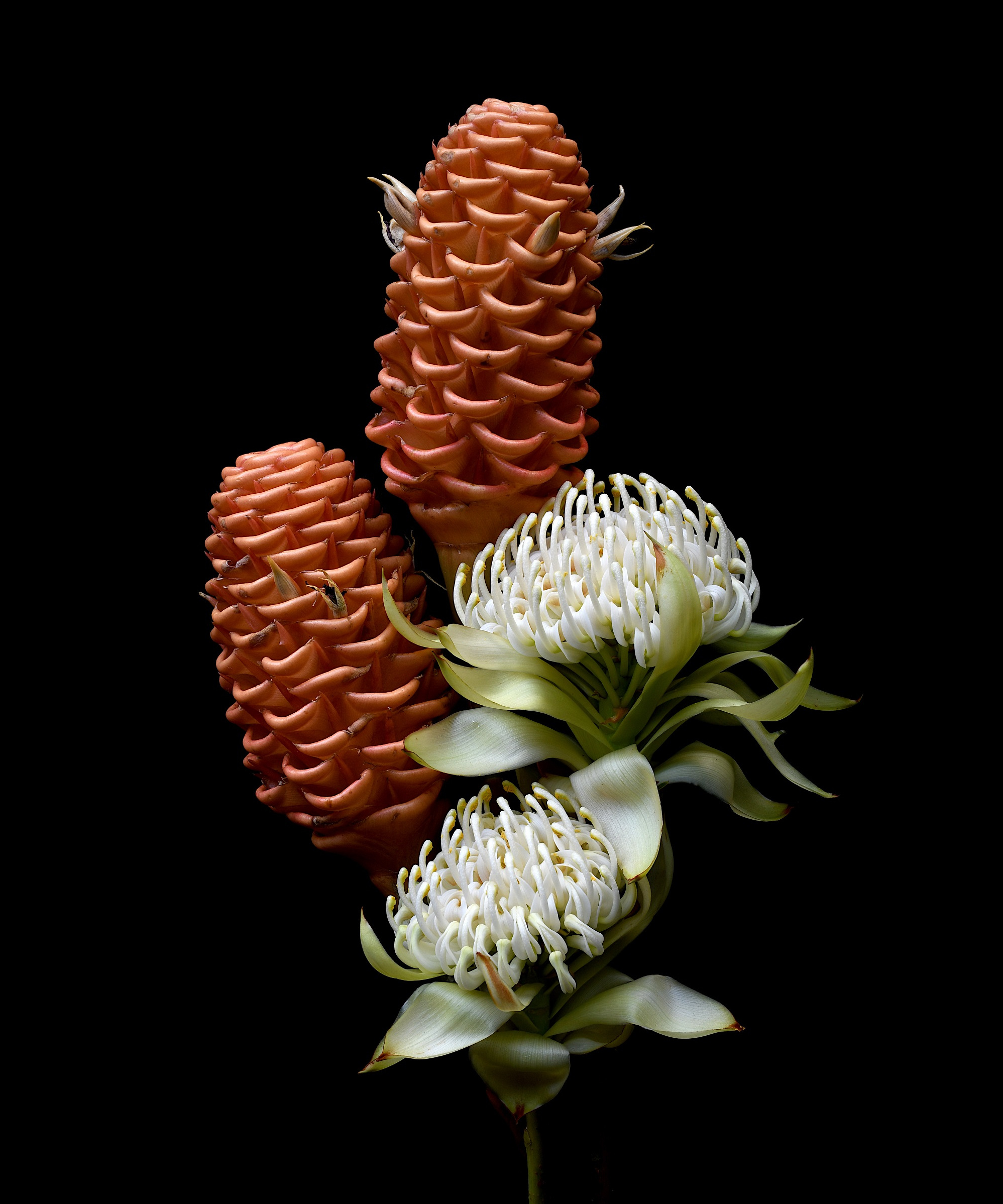 The highly sought after Waratah flower is a striking and iconic Australian bloom, with it’s creamy white petals and bold shape. Beehive Ginger are striking tropical flowers with their unique cones and amazing scent. This art print captures the structural beauty and drama of two botanical wonders that shouldn’t work together, but are oh so stunning, making it the perfect addition to any home.