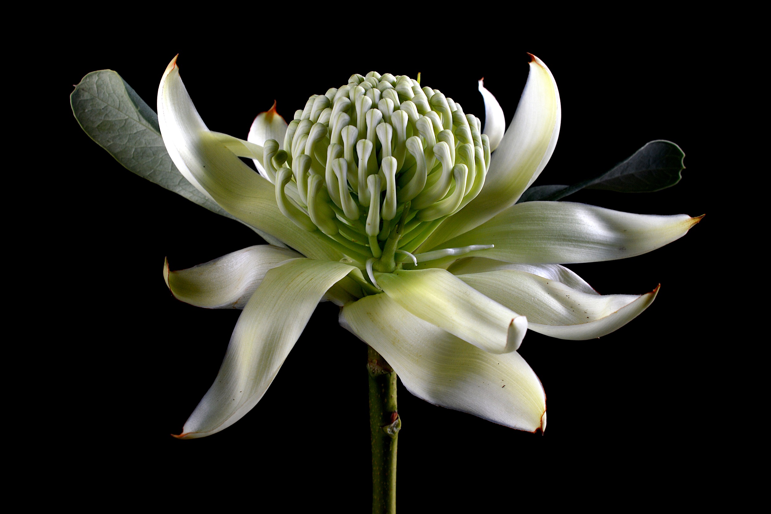 The white waratah remains so pure.