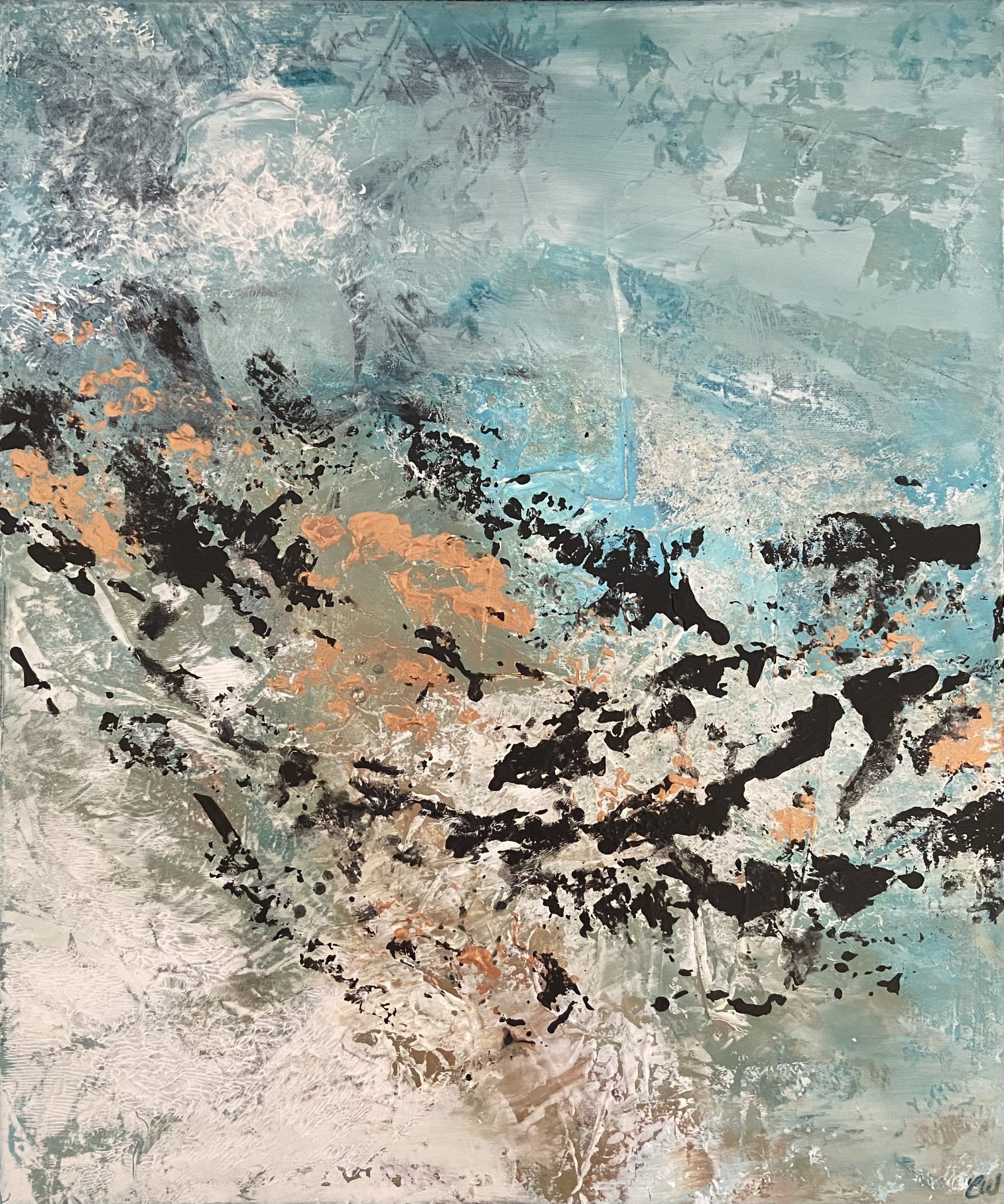 Wild Adventure by Carrie Welsh is a beautiful textured abstract piece with metallic accents that shimmer in the light. 60 x 50 cm. Acrylic on canvas, ready to hang. Frame not included.