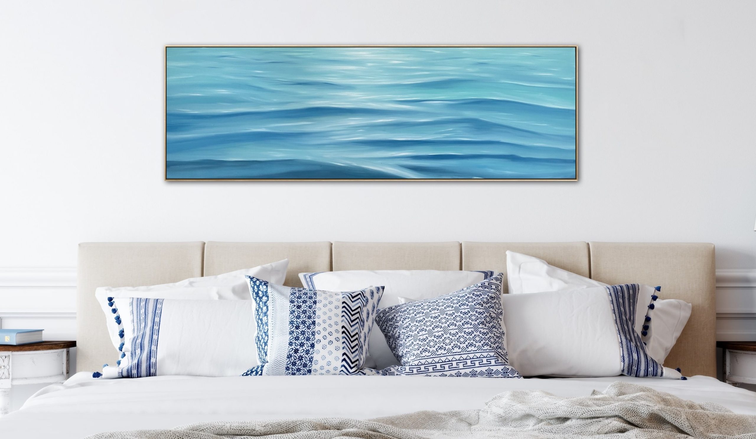 This piece is more of a loose abstract style of seascape, it brings light, movement and flow to a space without being an overbearing statement.