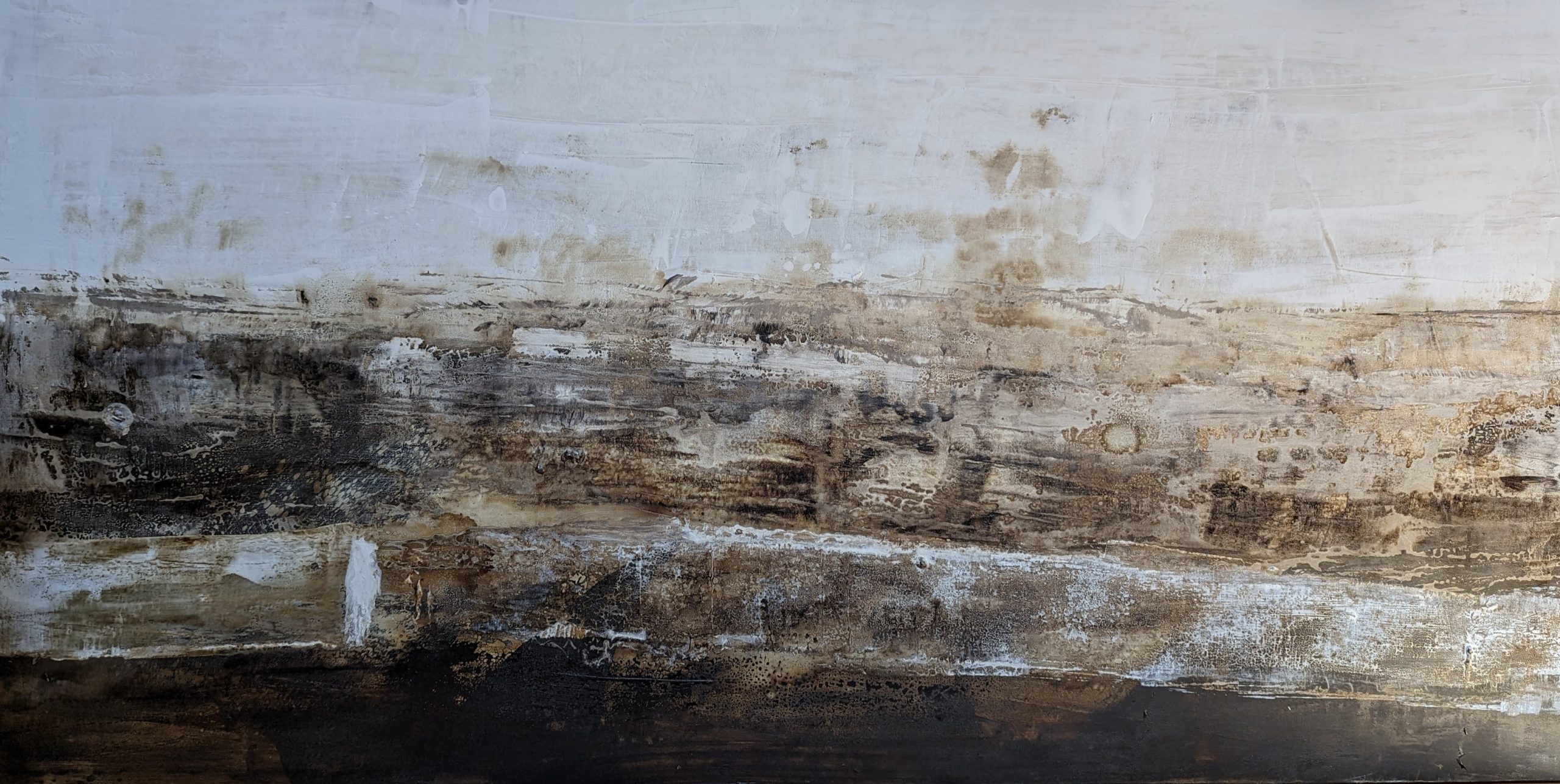 The use of browns and whites in “Wild Dreams” create a dreamy, earthy quality to the painting, as if the viewer is lost in a natural landscape.