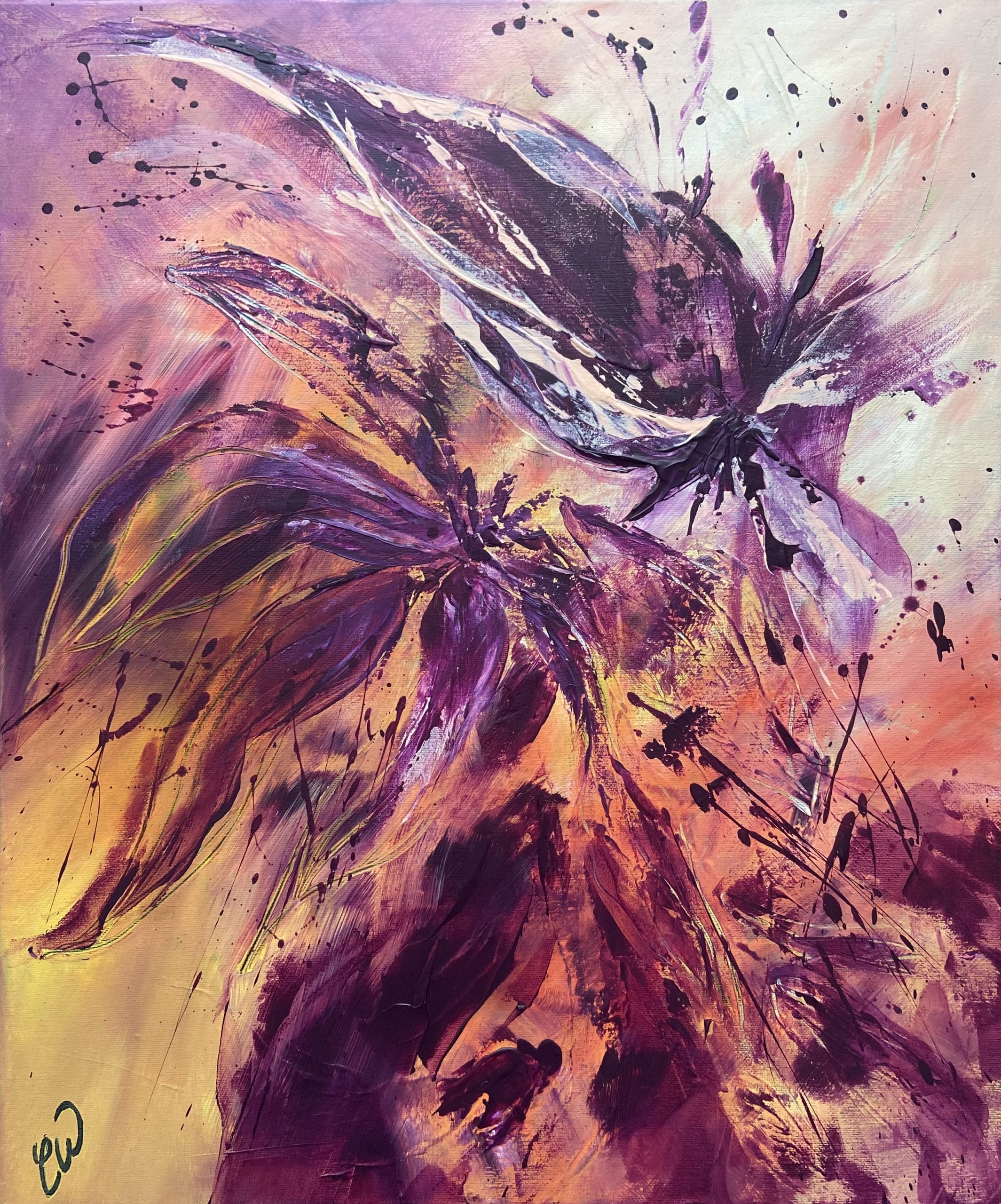 Wild Essence by Carrie Welsh is a beautiful abstract botanical piece with lots of texture. 50 x 60 cm. Acrylic on canvas, ready to hang. Some images show what this piece looks like framed. Frames not included.
