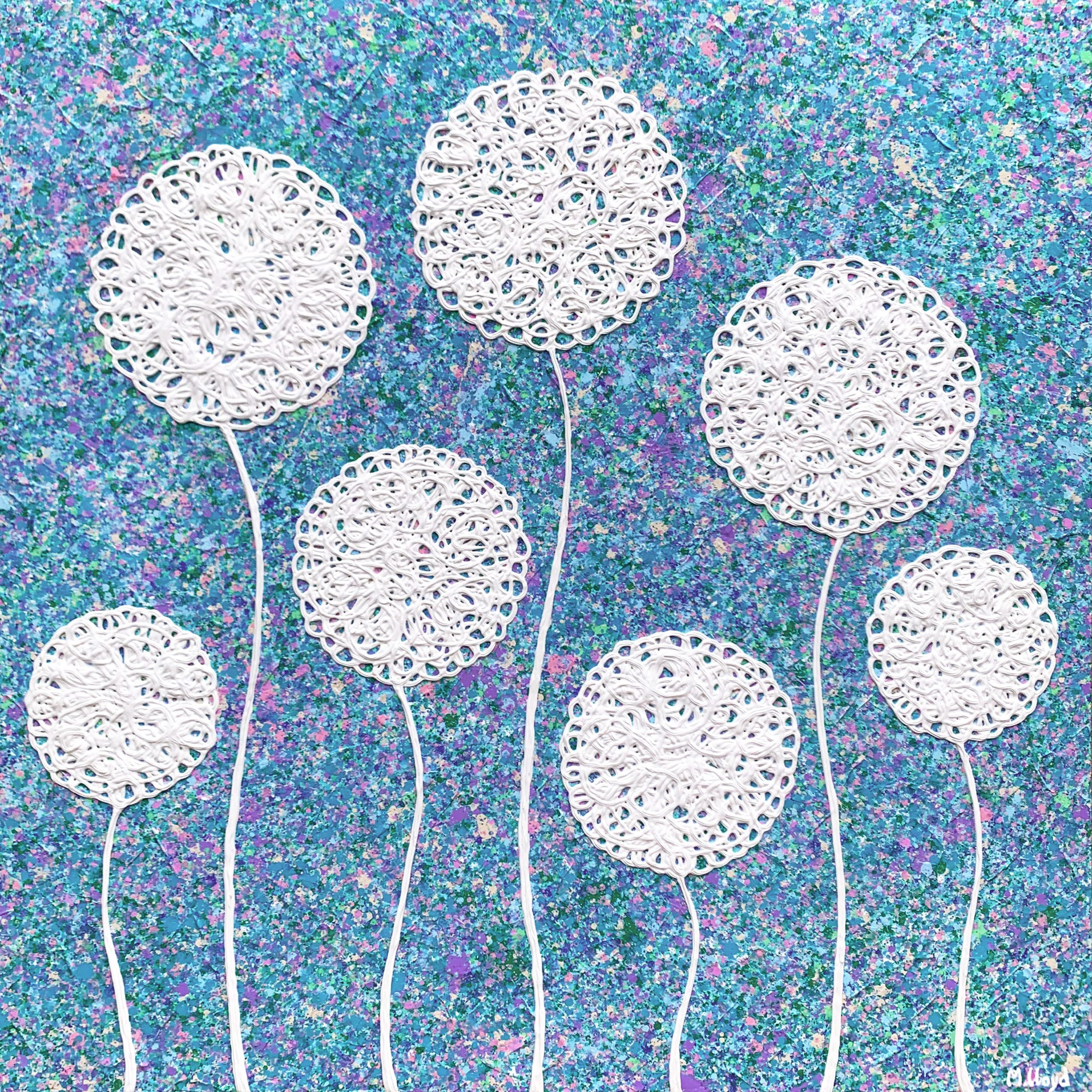 SOLD – Flowers – Coastal Deep Blue Textured Abstract