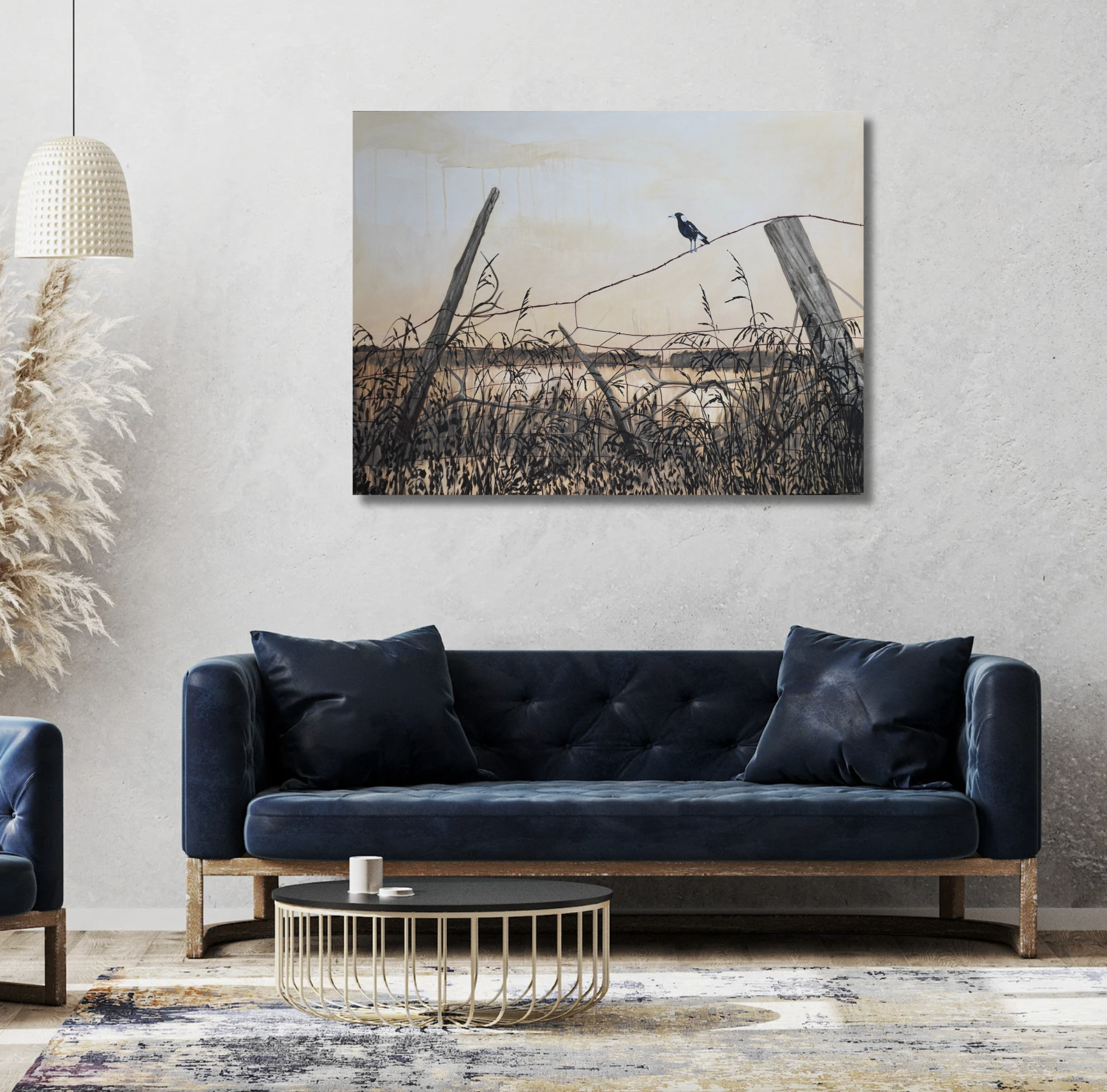 No frame included; custom options available, oak floating frame recommended. Please contact help@artloversaustralia.com.au for enquiries and framing quotes.