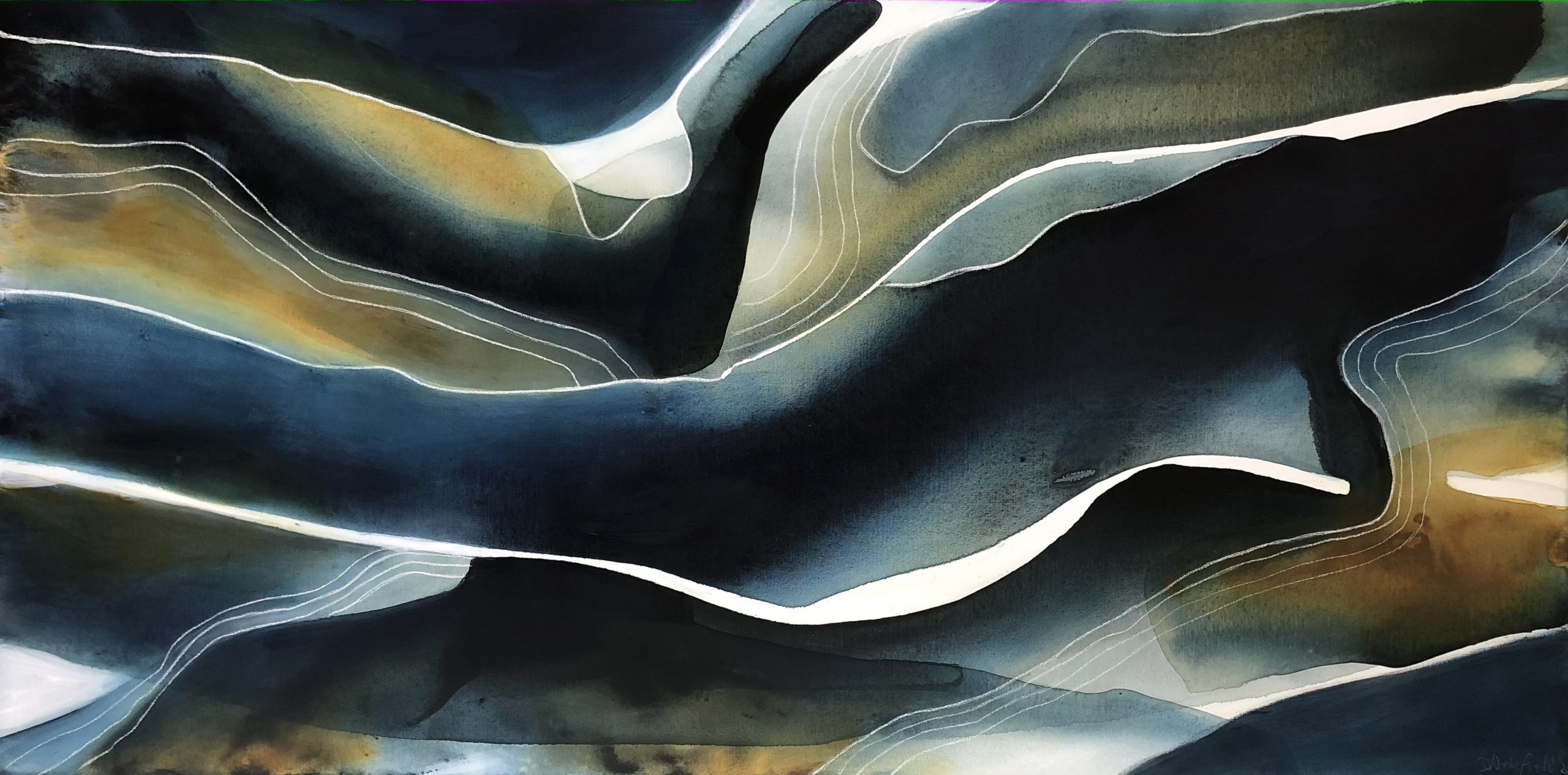 Wild Mountain by Dinah Wakefield is inspired by the light, the colours and the natural beauty of the Noosa region of Australia. “What I love most about Noosa is the interplay of light. From the oceans to the clouds, to the river estuaries and the hinterland, this canvas unfolds before me every day and finds expression in my paintings”.