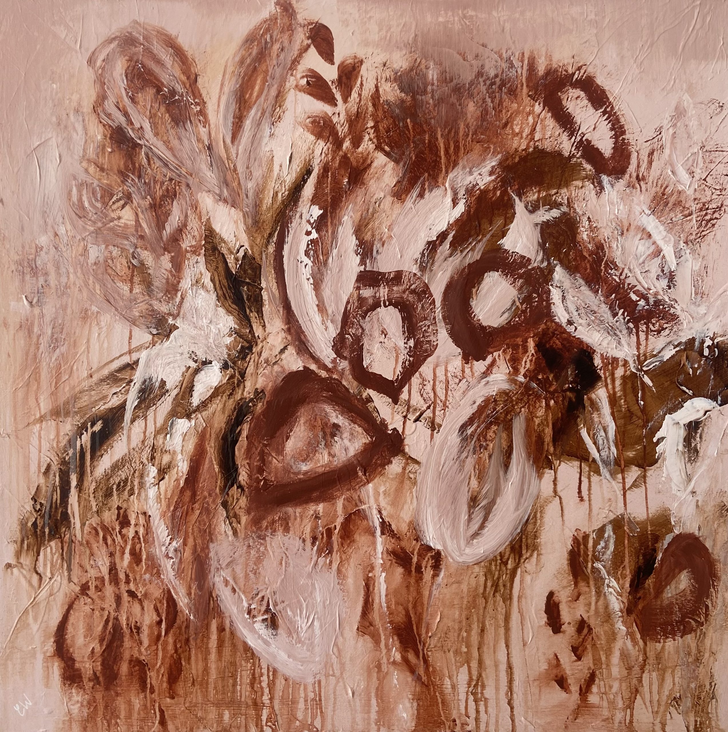Wildflower by Carrie Welsh is a beautifully textured abstract botanical painting. 91.4 x 91.4 x 2 cm. Acrylic on canvas, ready to hang. Frame not included.