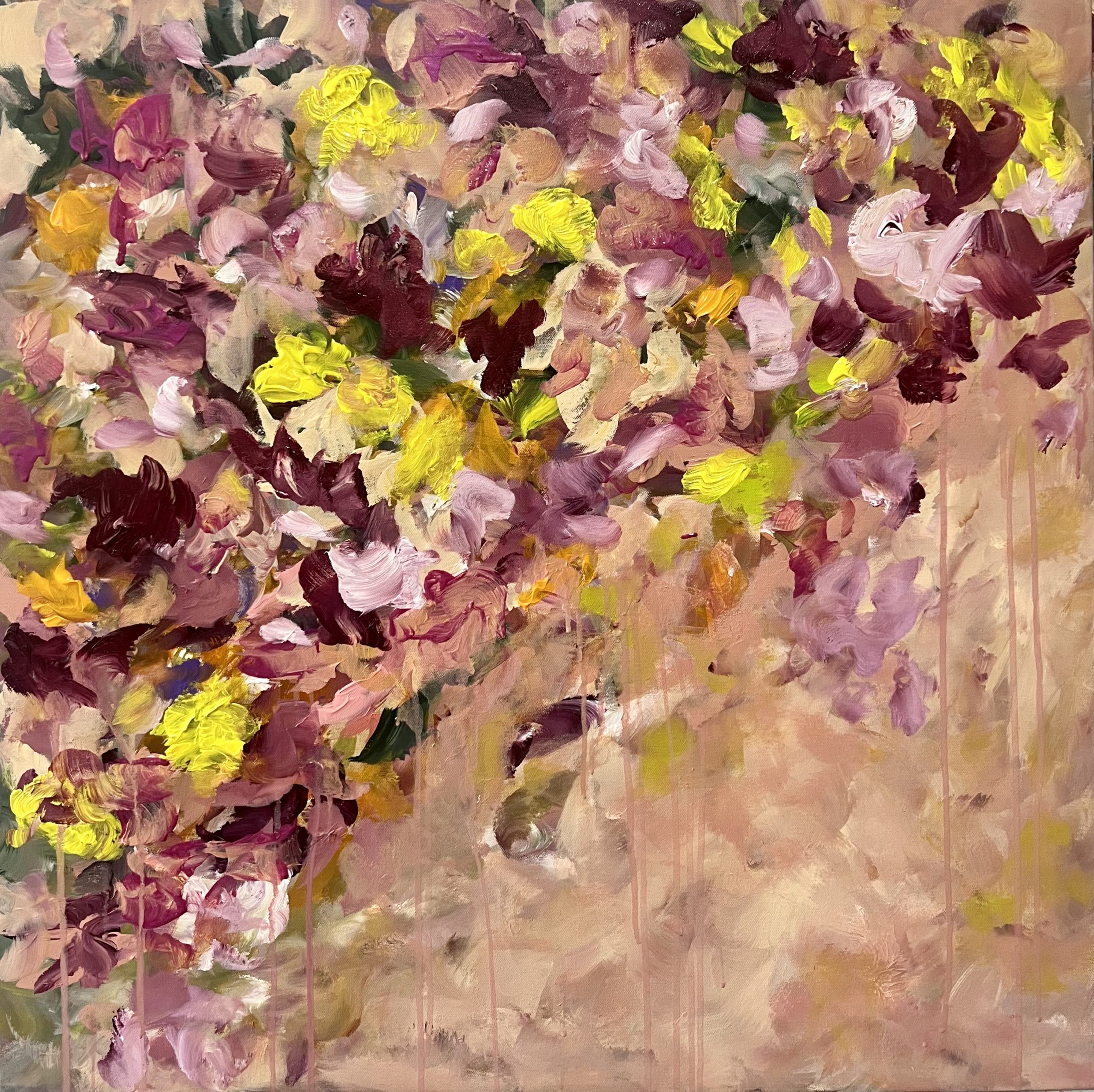 My abstract artworks especially with floral impressions from memory complete my creative journey, making it soulful and I believe that fulfilling experience can be felt in my works freely. I love painting with vibrant colors, using hands and loose strokes of brushes, palette knives and unusual tools of craft in the process of layer building. These play an amazing role in enhancing the depth of composition.