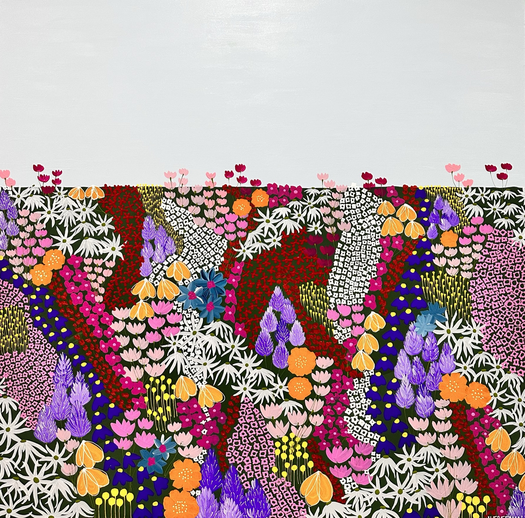 This painting celebrates Australia’s native wildflowers, capturing their unique beauty and essence. Inspired by their shapes, colours, and diversity, I’ve used bold strokes and a vivid palette to bring these flowers to life. At the heart of the piece, the wildflowers represent my deep connection to the land and the resilience of Australia’s flora.
