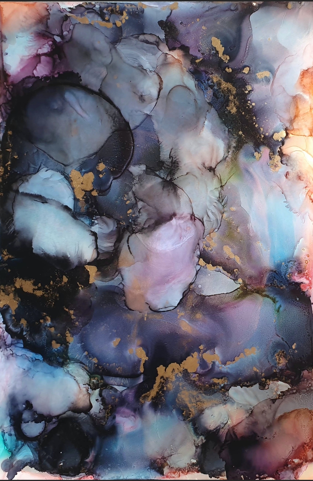 The medium used is alcohol dye ink on heavyweight Yupo synthetic paper. Sealed with UV protective varnish ready for framing. Signed on front.